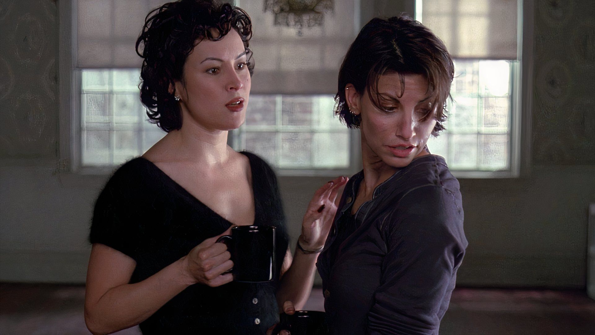 Bound is a stylish neo-noir film that’s different from typical crime thrillers. It combines crime, suspense, and a love story, focusing on Corky and Violet (played by Gina Gershon and Jennifer Tilly). They team up to steal a lot of money from Violet’s dangerous mobster boyfriend, Caesar (Joe Pantoliano), and things quickly become complicated and risky as their plan unfolds.