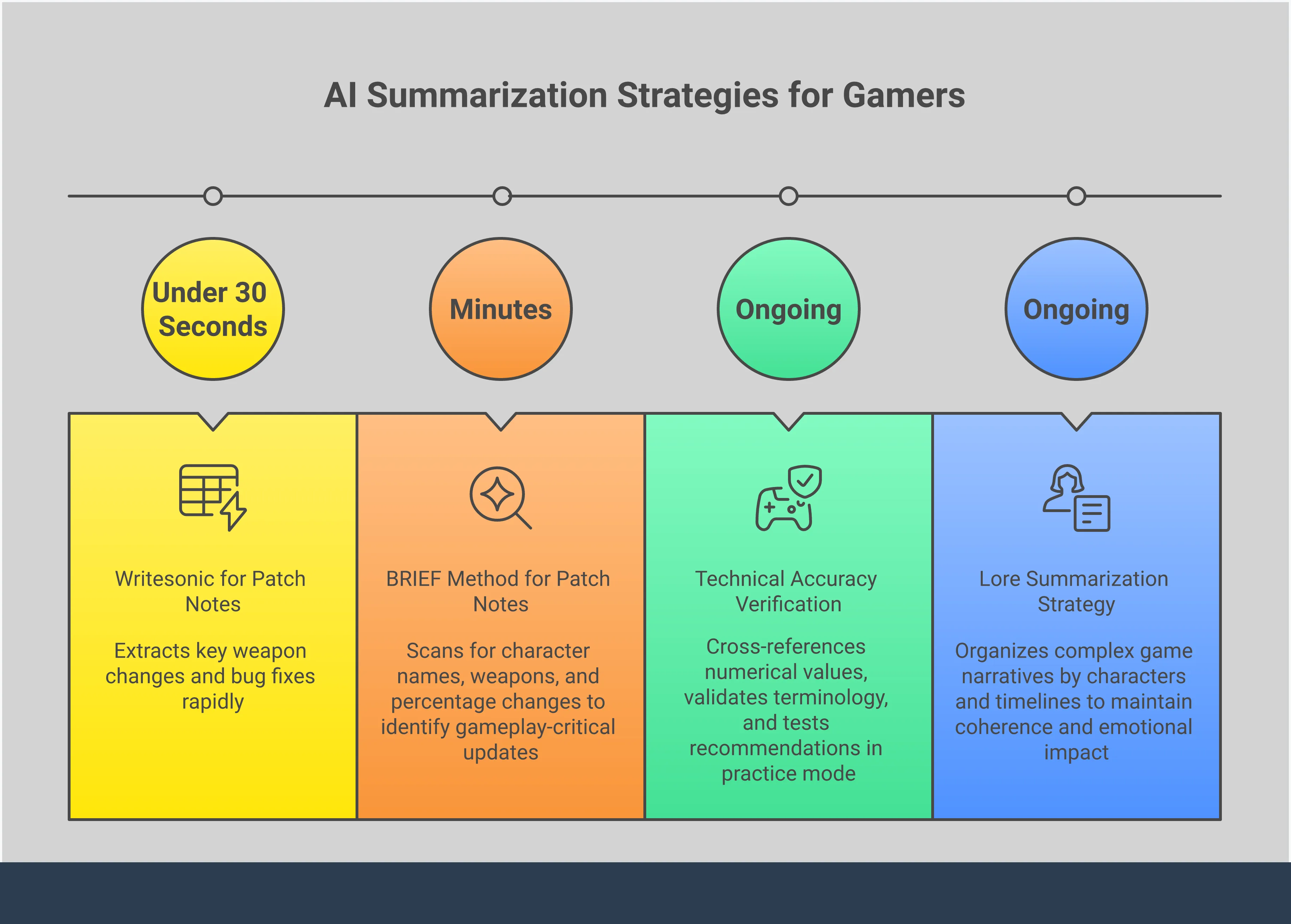 Gaming content varies greatly, so one-size-fits-all summaries don’t work well. The best way to summarize depends on the content itself. Long lists of updates need a different approach than in-depth reviews or detailed story explanations. Think of summarization techniques as tools – you wouldn’t use the wrong tool for the job. Just like you wouldn’t use a sniper rifle in close combat, you shouldn’t use a lengthy, story-driven summary when you simply need to know about gameplay changes.