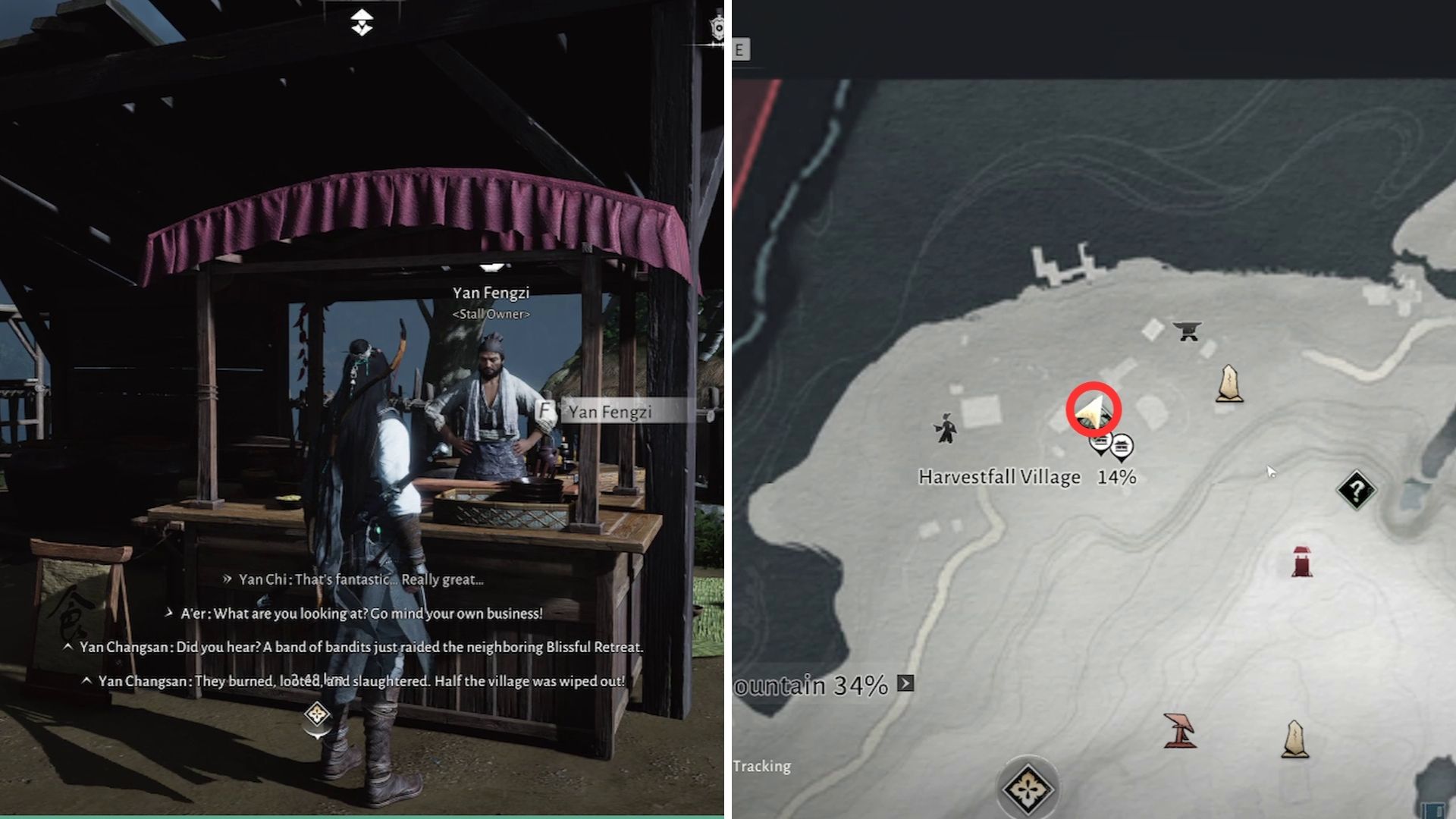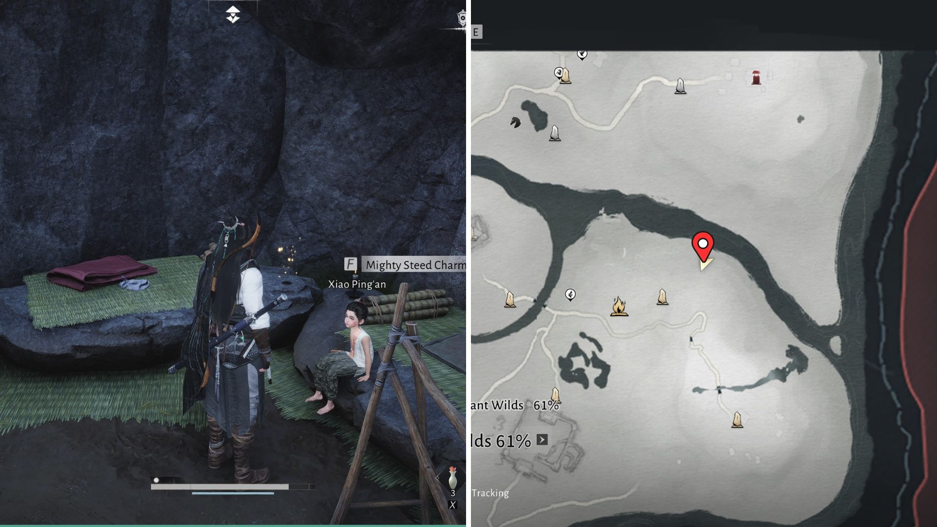 After defeating a bandit camp, you might see a message on your screen that starts the ‘Little Master’s Legacy’ quest. If this happens, a character named Xiao Ping’an will appear near the camp and ask you to demonstrate a weapon skill for him.