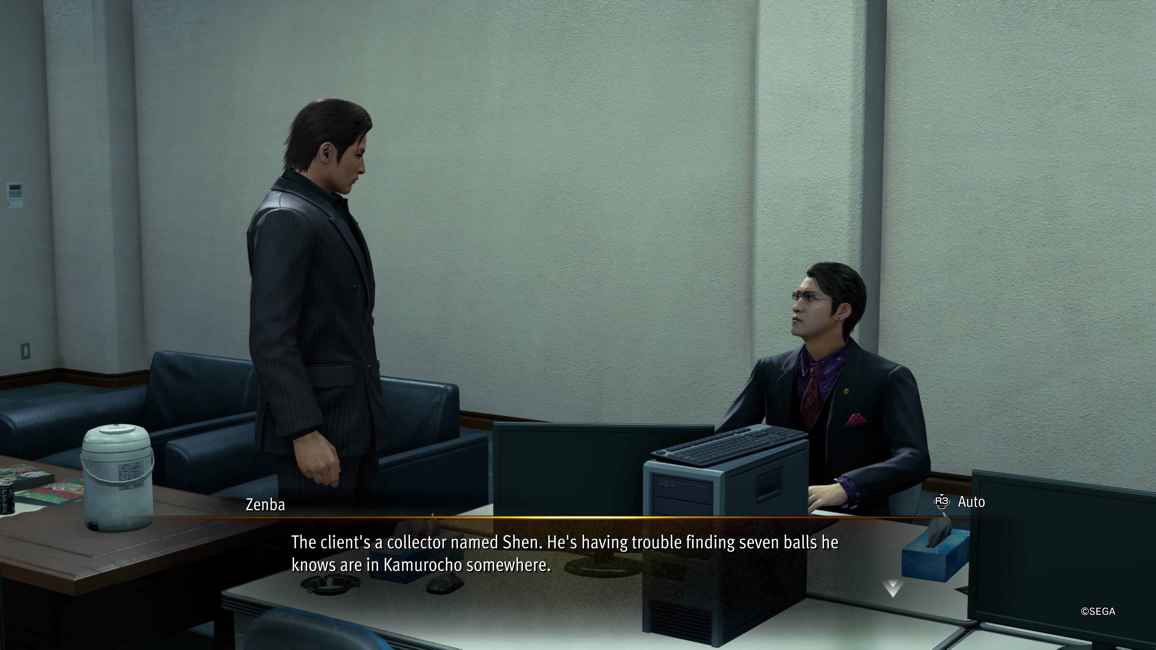 After you gather all seven Golden Balls, return to Zenba. He’ll tell you to personally deliver them to the client near the Millennium Tower. Find Shen there and give him the balls he worked so hard to get.