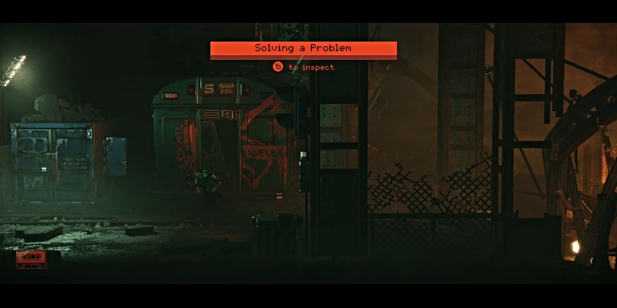 You’ll find the “Solving a Problem” music track right after you beat Geiger. Head to the left and jump up onto the platform. The track is on the ground in front of an old subway car.