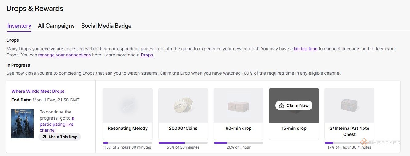 If you’ve already used all the free reward codes in Where Winds Meet, don’t forget to check out the free items available through Twitch Drops! You can earn a few extra rewards just by watching, and you don’t need to subscribe to any channels to get them.