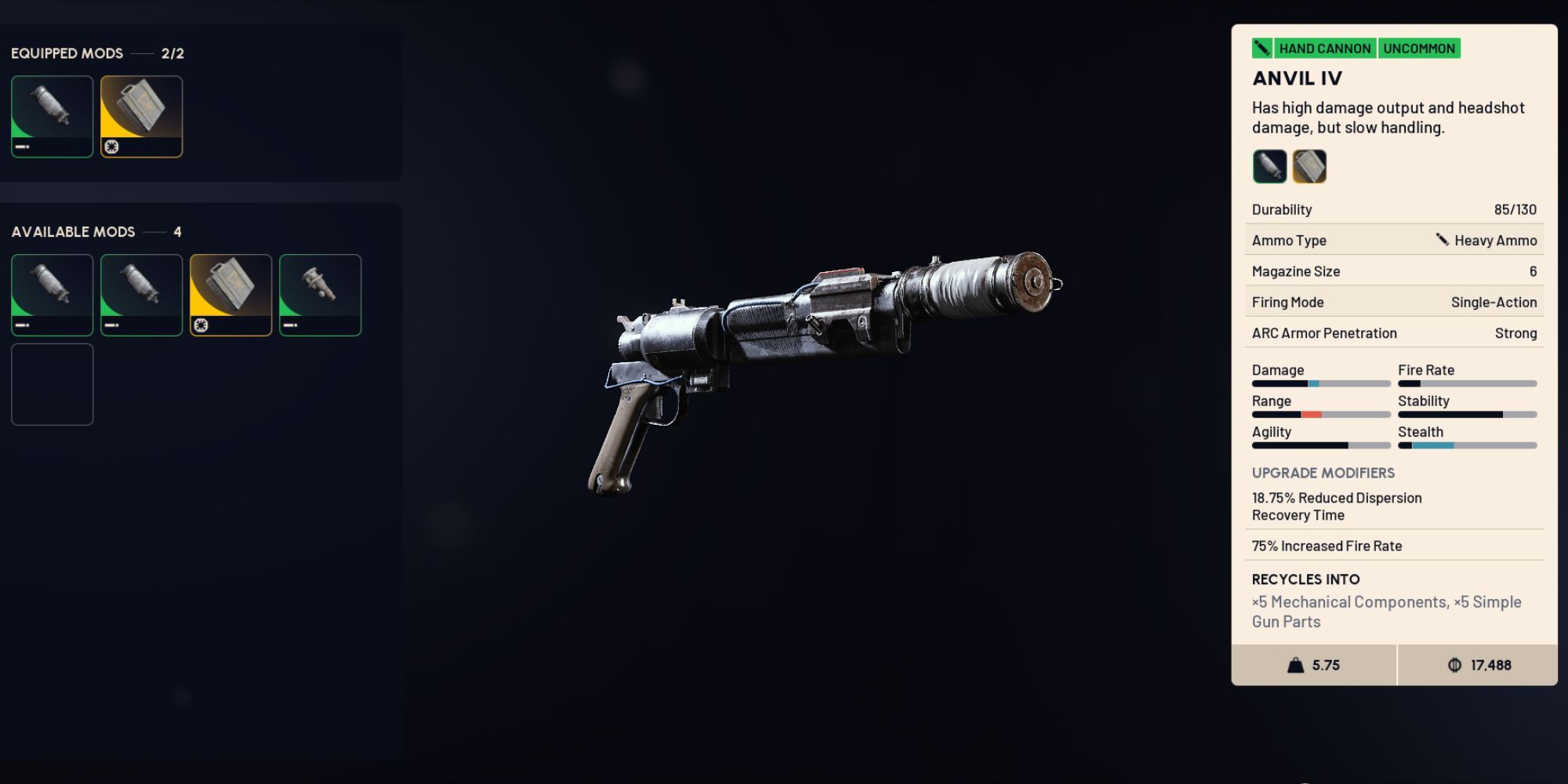 The Anvil is my top pick among these weapons, and it’s surprisingly powerful for its type. It deals a lot of damage with headshots, making it good in both close and long-range fights. Plus, upgrading it significantly boosts its firing speed.