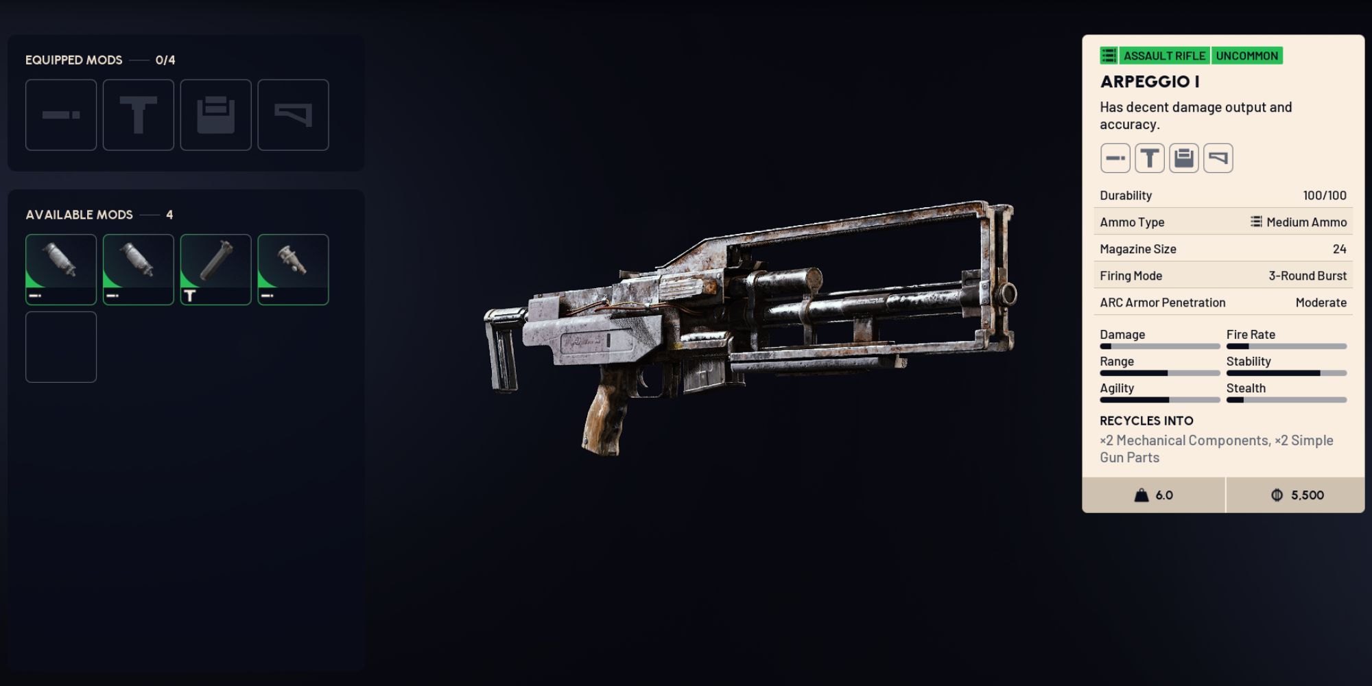 The Arpeggio is a versatile assault rifle best used at medium range. It’s effective against both Raiders and ARCs, but you’ll get the most out of it by maintaining some distance from your enemies.
