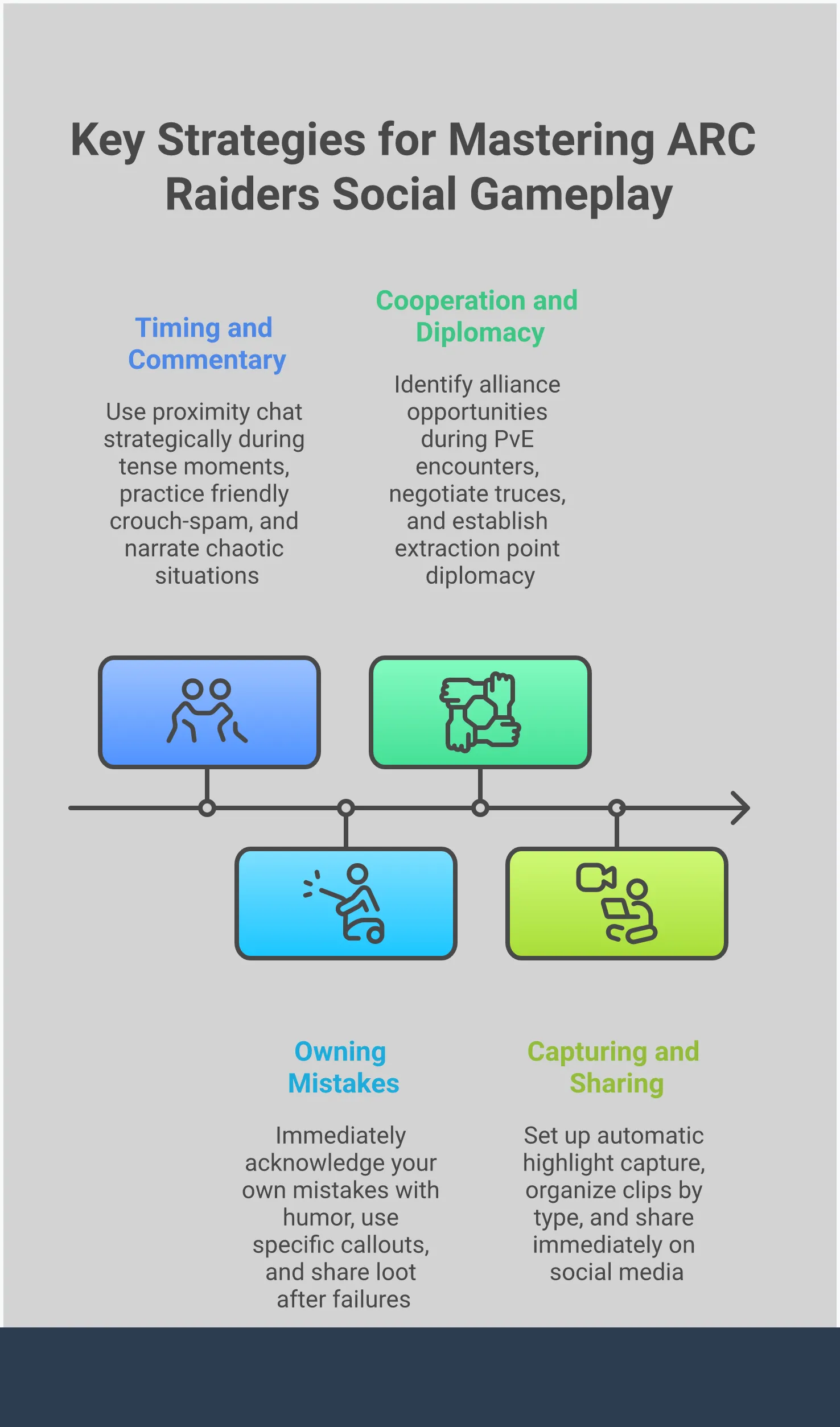 Everyone has experienced that sinking feeling – you’re the last player on your team, and you miss an easy shot. How your teammates react in those moments can really change everything. A good teammate offers support and encouragement, not criticism. Even a simple “good effort” or “we’ll get the next one” can make a big difference. As ZLANER pointed out, interactions in ARC are often unexpected, so you need to be prepared for anything. That’s why a supportive teammate is so important. When someone is struggling, offering help – like sharing items or watching their back – creates a safe environment where they can take chances without worrying about being criticized for mistakes.