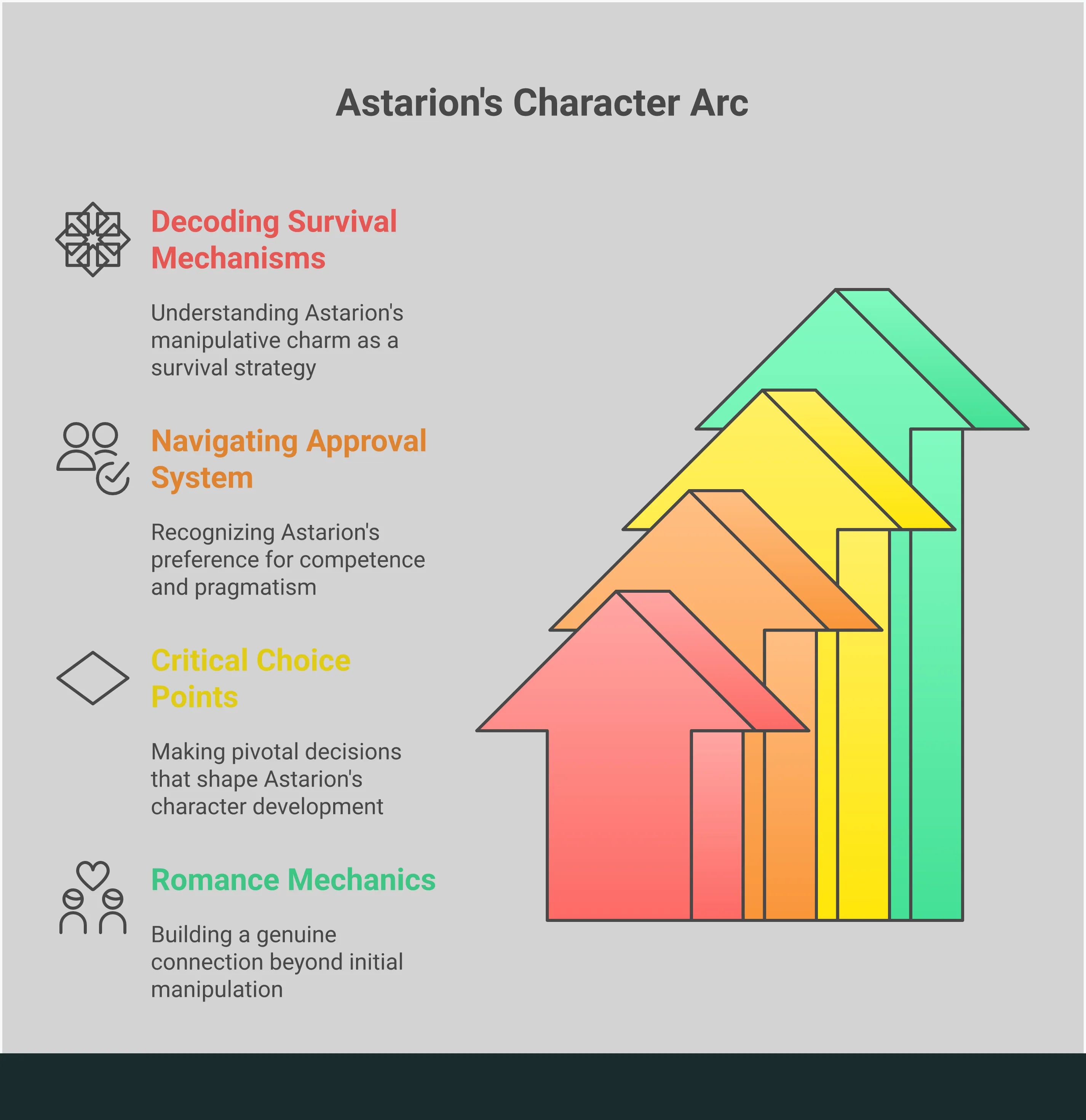 Astarion learned to use seduction to survive. When he was controlled by Cazador, he had to attract victims using his charm. Even with the party, he still flirts and seeks intimacy, but now to feel secure and ensure he remains useful. He’s essentially figuring out how much he can get away with and how to influence you to his advantage. Building real trust with him takes time and shows him that connection isn’t just about getting what he wants. He needs to learn that being vulnerable isn’t a weakness, but something safe.