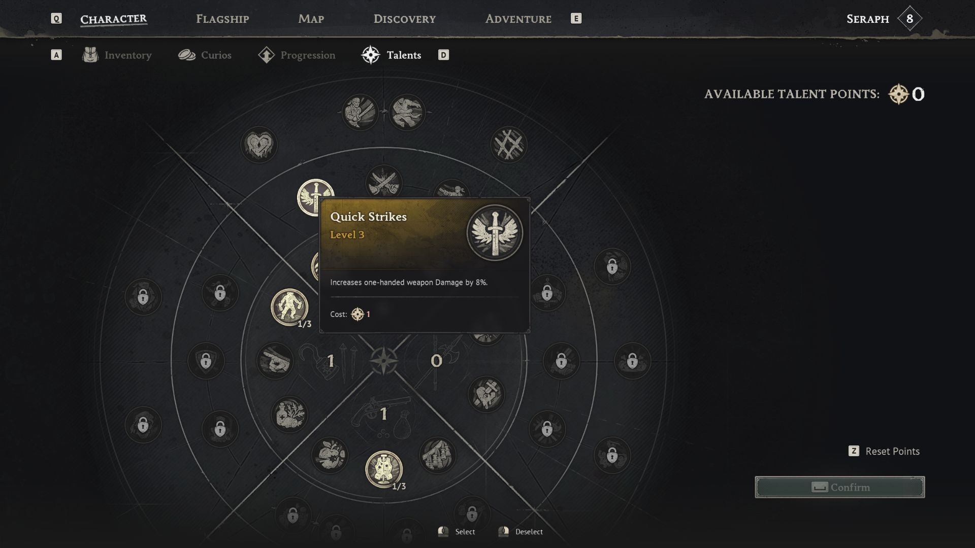 Windrose offers a variety of talents to customize your character. These talents are organized into four sections, letting you spend points to develop your preferred skills.