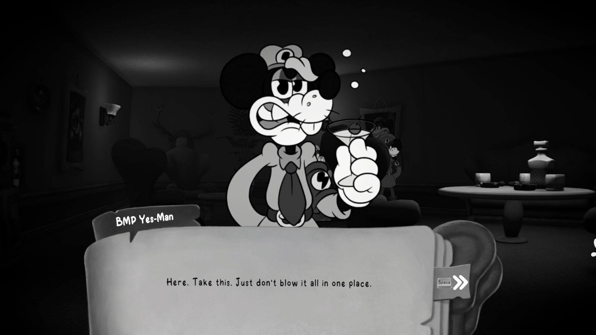 If you talk to the BMP mouse, he’ll ask you to take a picture of his associates engaging in an affair.