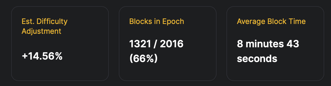 To roughly 800 EH/s, a fall as dramatic as a nobleman’s from grace. - When is the next Bitcoin difficulty adjustment expected?