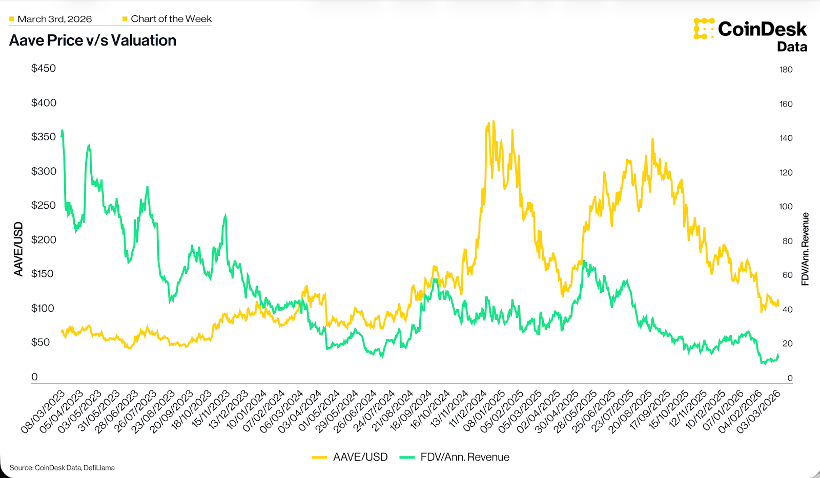 Aave’s revenue multiples hit 2024 lows despite higher prices