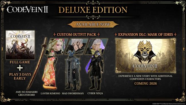 The Code Vein II Deluxe Edition includes