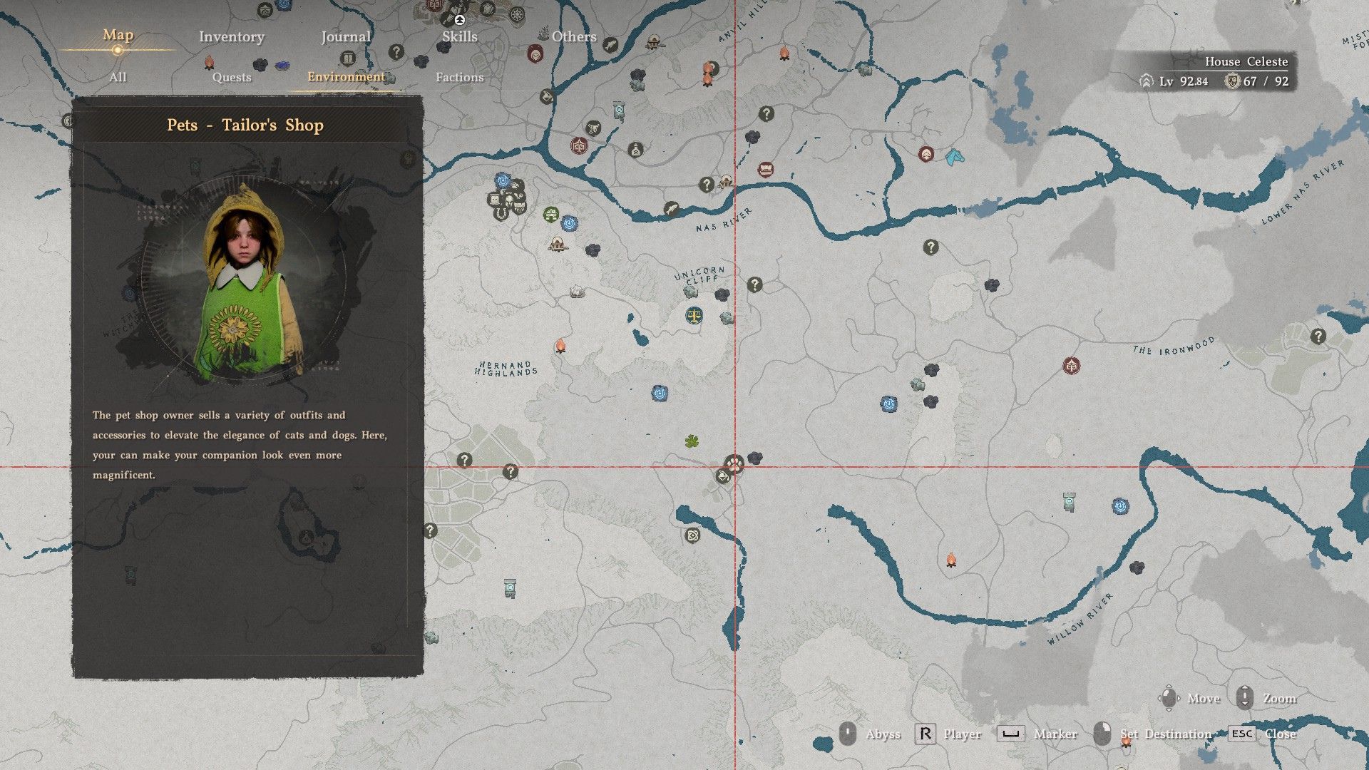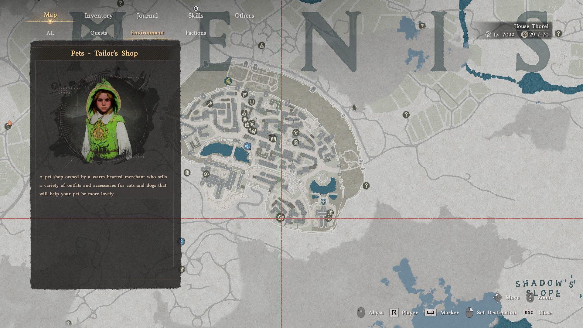 During Chapter 8 of the main quest, players can buy armor for their pets at a special shop in the southwestern area of Demeniss City. You can find the shop’s location in the image below.