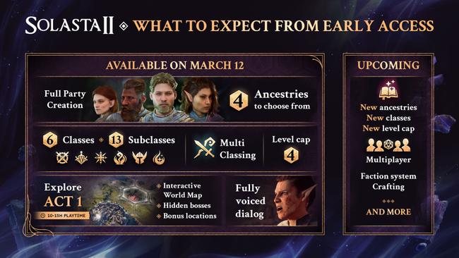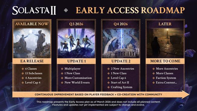 The developers plan to have Solasta II in Early Access for approximately one year. By the end of this period, the main story will be complete with characters able to reach level 10. They also intend to add online co-op, more character classes and races, new areas to explore, more creatures, and additional quests during Early Access.