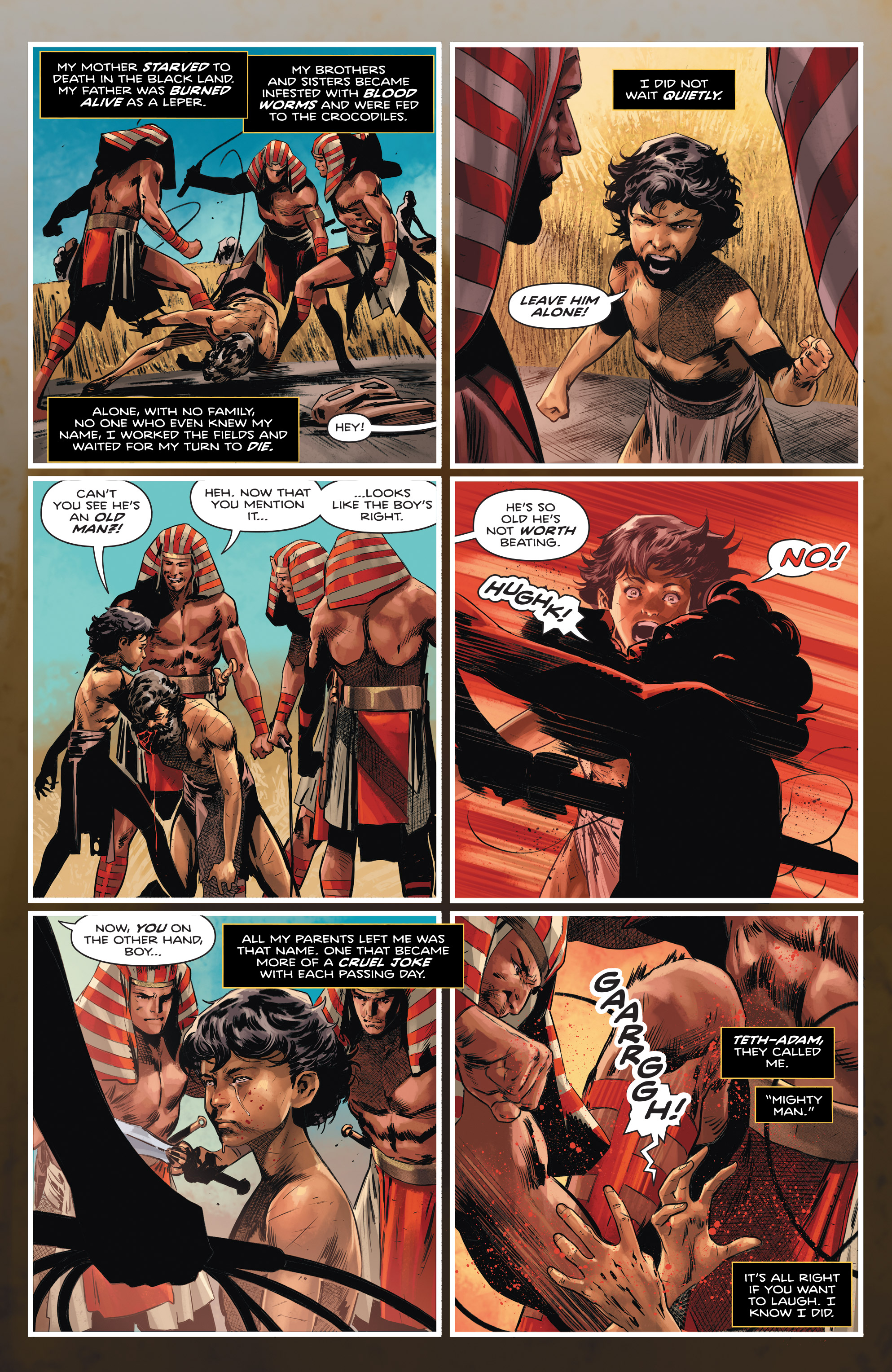 Absolute Superman #18, written by Jason Aaron and illustrated by Rafa Sanoval, begins in Ancient Egypt. We meet Teth-Adam, a young slave suffering under a harsh pharaoh – a story many comic book readers and fans of the DC Extended Universe will recognize. However, this version introduces a magical woman who inspires Teth-Adam’s ambitions, a character who is typically portrayed as a male member of the Justice League in the core DC Universe.