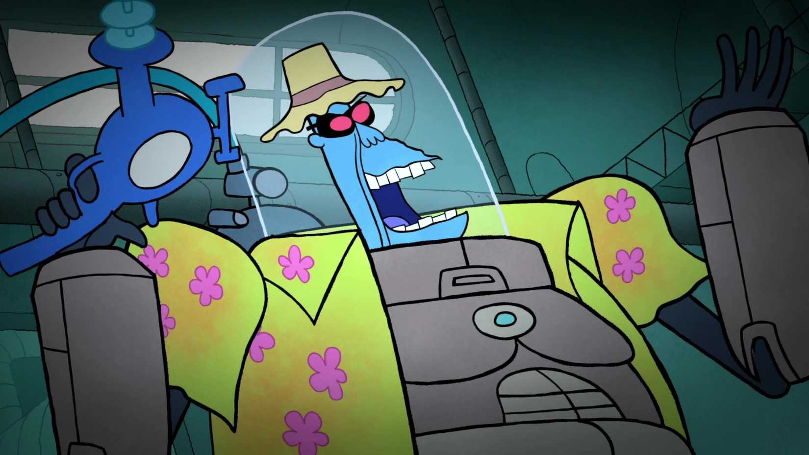 Mr. Freeze is a consistently entertaining villain who remains an enemy of Batman throughout the show. Voiced by Dolph Adomian, he appears in season 1, episode 9 of Bat-Fam, titled “April Fools! Part 1.” His appearance is quite distinctive in this animated series: he wears a large metal suit, red goggles, a brightly colored Hawaiian shirt with purple flowers, a glass helmet, and has a small heater on top of his blue skin.
