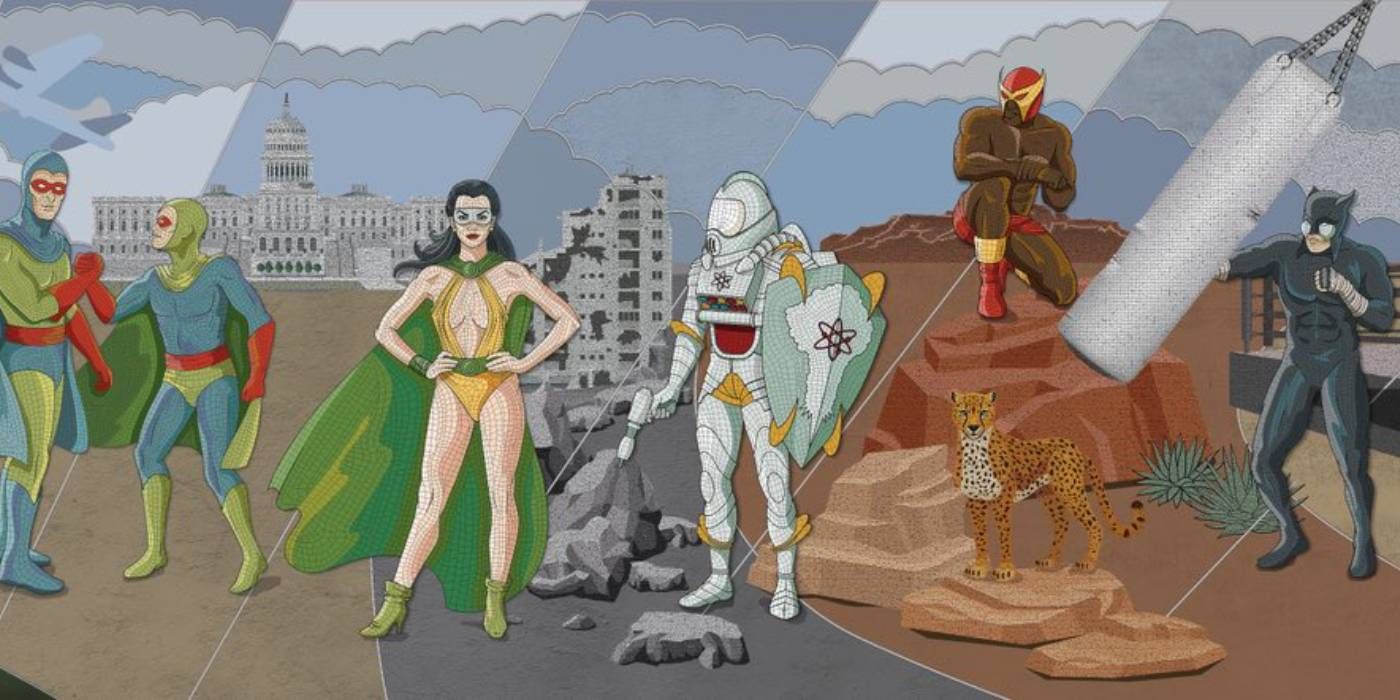 In the show Superman, the Justice Gang uses the Hall of Justice as its base – a famous location first seen in the Super Friends cartoon. Inside, a large mural displays the history of DC Universe superheroes. While the painting includes many lesser-known characters, it also features members of the Justice Society of America (JSA). By including these heroes – Sandman, Wildcat, Amazing Man, Liberty Belle, Phantom Lady, and Max Mercury – Superman officially established them as part of the main DC Universe story. Wildcat and Sandman are particularly well-known for their long association with the JSA, and several of the other characters shown in the mural have also been members of the team at different times.