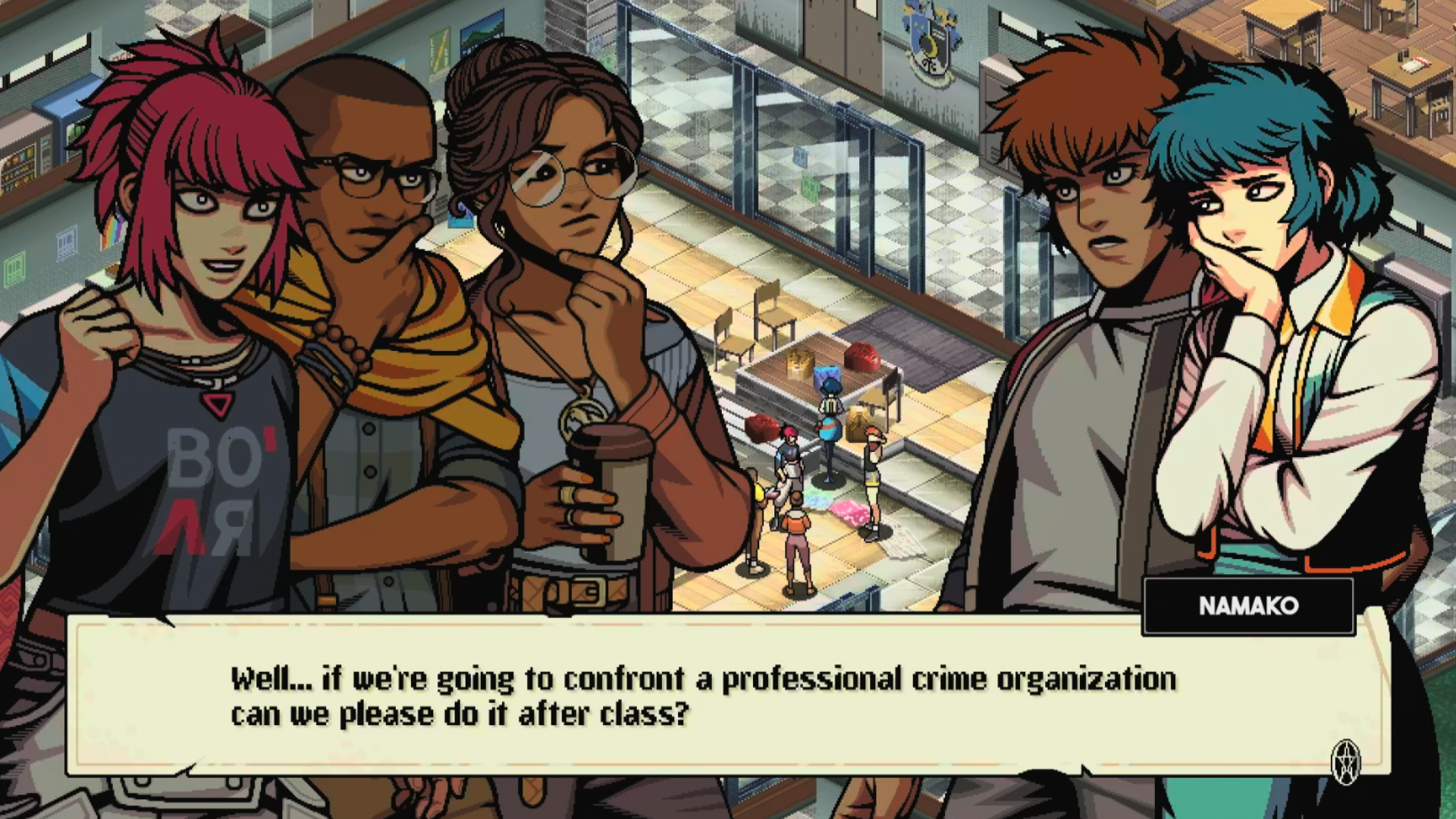 Initially, the characters’ calm reactions seemed strange, given the demon massacre happening around them. But once I understood the game was deliberately portraying these threats as ridiculous, I started to enjoy it. While there’s still a sense of danger and worry within the group, if everyone acted completely realistically, they’d quickly become boring. This unusual approach is what makes Demonschool so appealing.