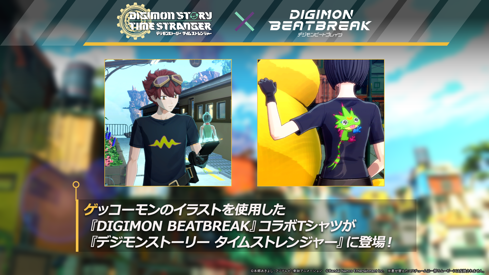 The latest update for Digimon Beatbreak introduces a promotional trailer that will be displayed on billboards within the game’s virtual Shinjuku and Akihabara districts. Players can also now equip their character with a new T-shirt featuring a design inspired by the game’s protagonist, Tomoro, on the front and his partner Digimon, Gekkomon, on the back.