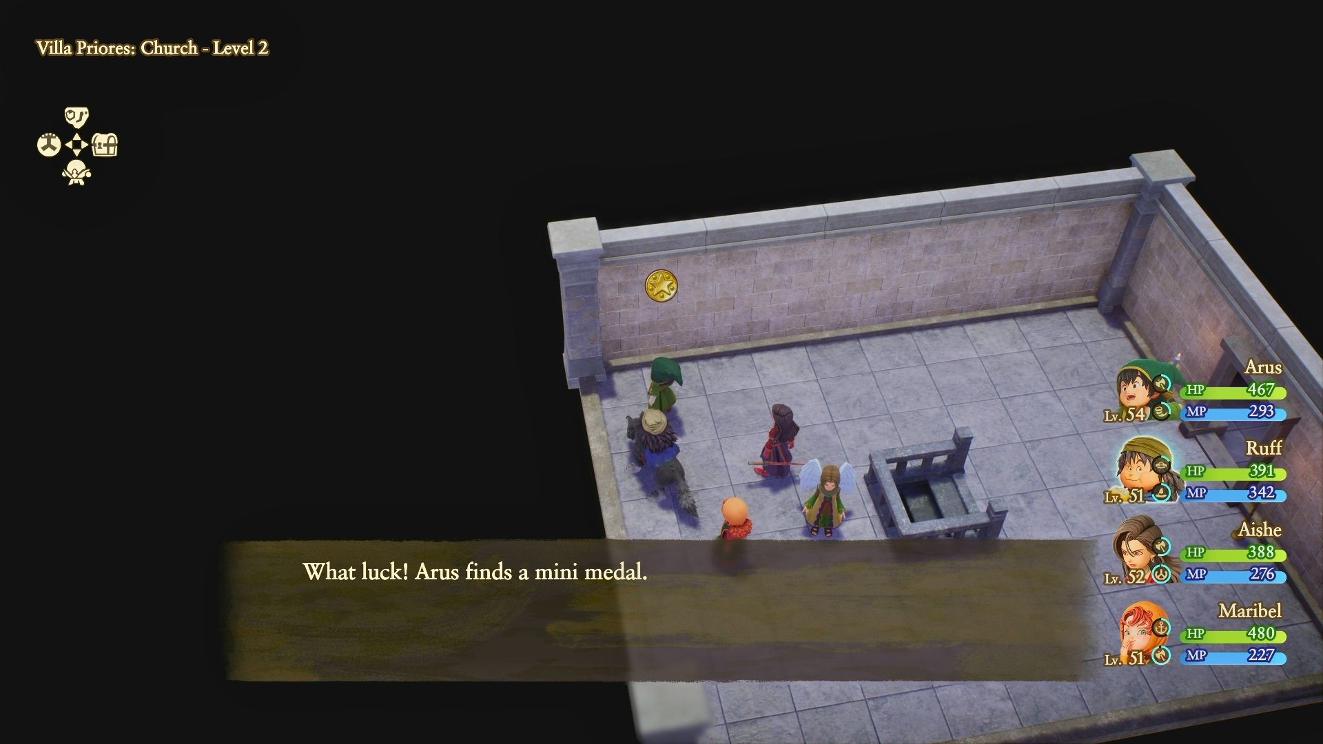 Okay, so as a tip for anyone heading to the Guiding Light, I found a Mini Medal! You can find it on the top level – just check the northern area, it was lying right there.