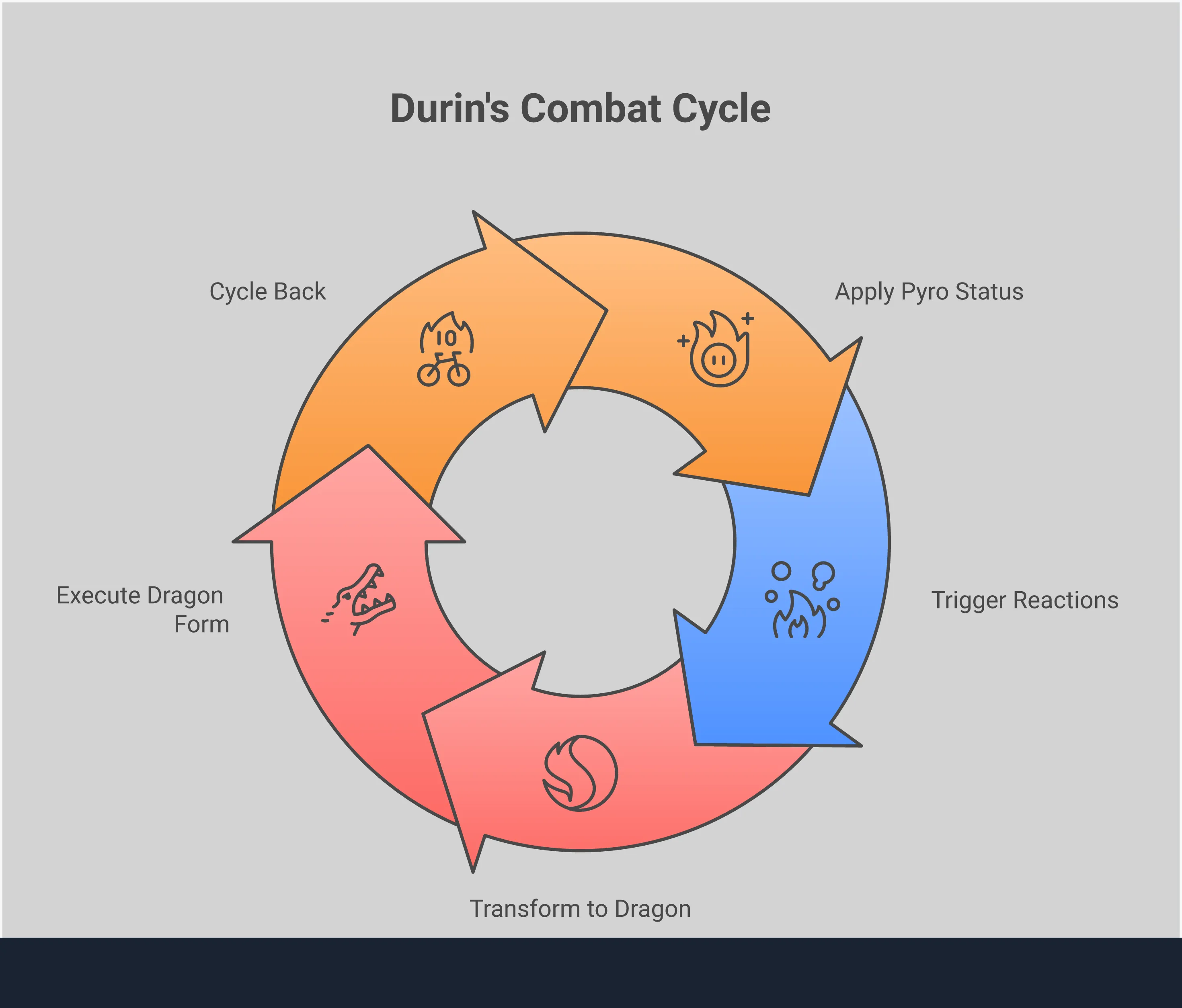 When fighting with Durin, quick form-switching is key. Use his Pyro form to quickly apply fire to many enemies, then switch to a Hydro or Cryo character to create powerful elemental reactions. Return to Durin’s strong attack form to take down important enemies. If you’re surrounded by a lot of enemies, transform into his dragon form to move around or deal damage to a wide area. Players are always discovering new ways to play him, so check online discussions for tips. Practice switching between forms until it becomes automatic.