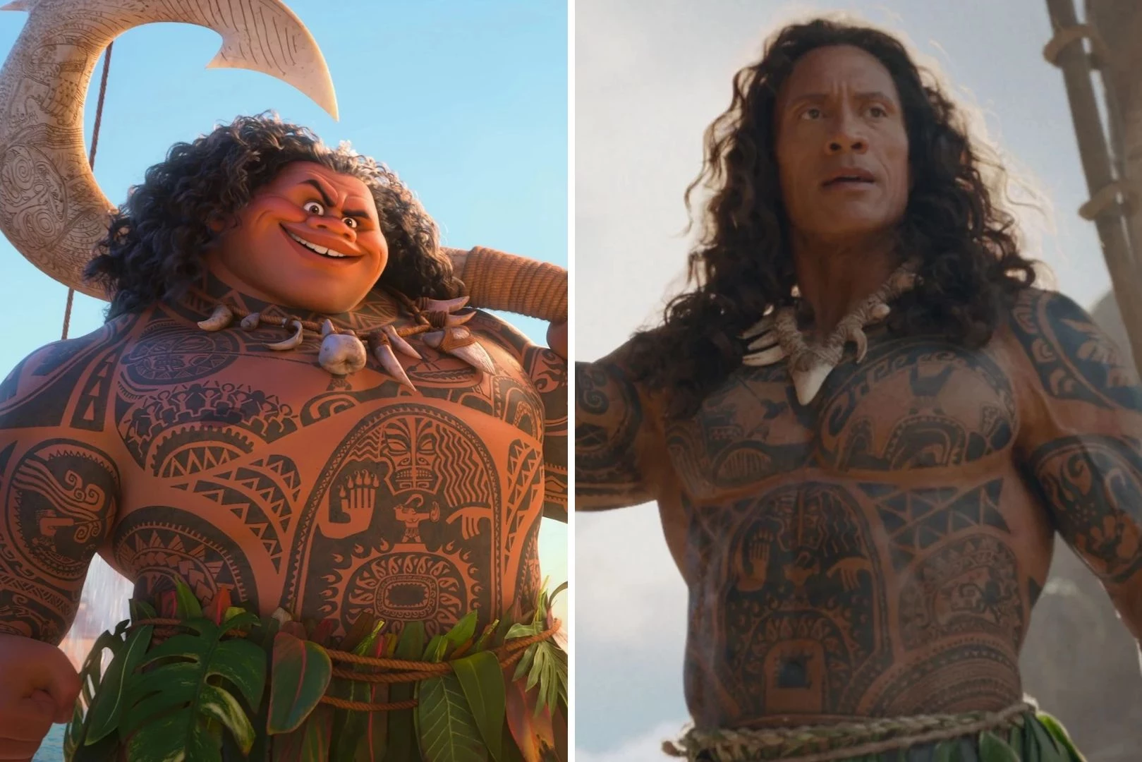 The first look at Dwayne Johnson as live-action Maui appeared in the new Moana trailer, which is available to watch below. Whether it’s the animated or live-action version, the two films look remarkably alike, even including the supporting characters.
