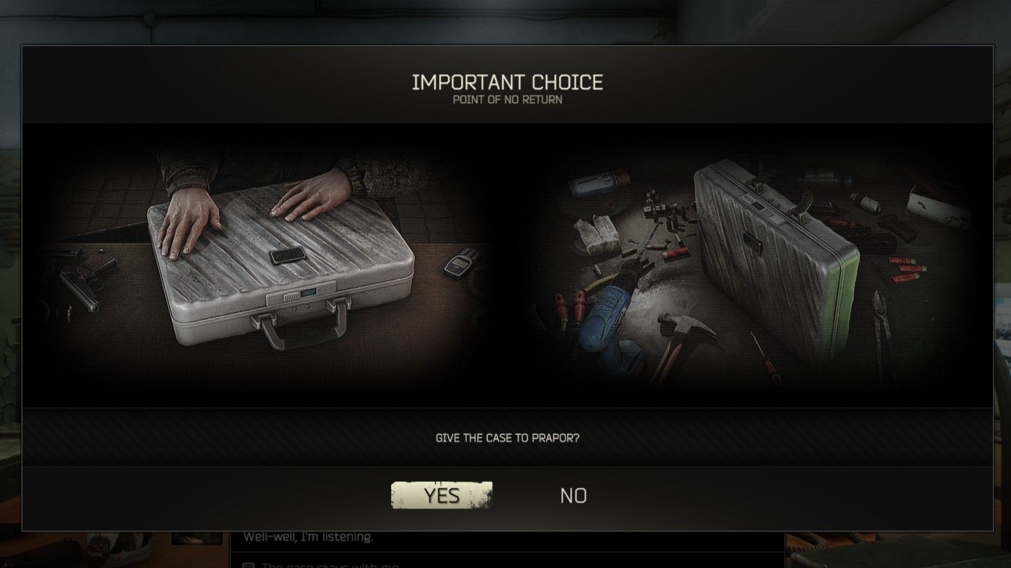 When you talk to Prapor about the armored case, you’ll have three options. You can give him the case, tell him you’re holding onto it, or pretend you never found it.