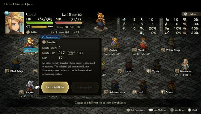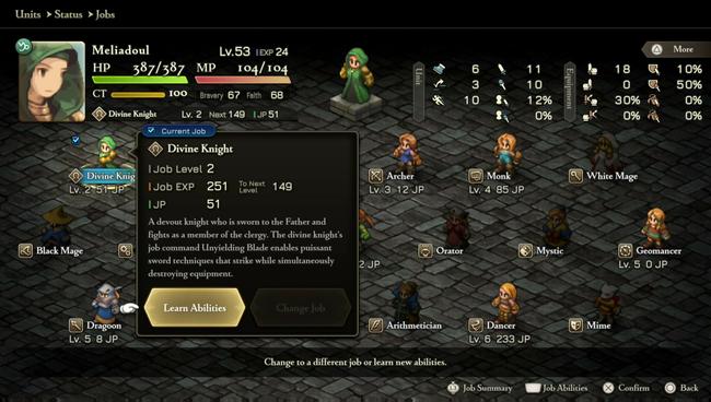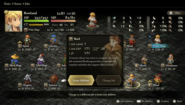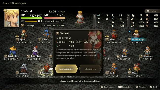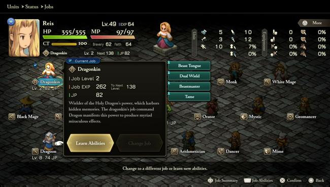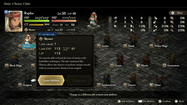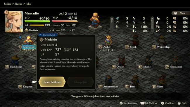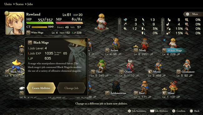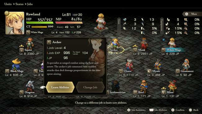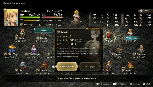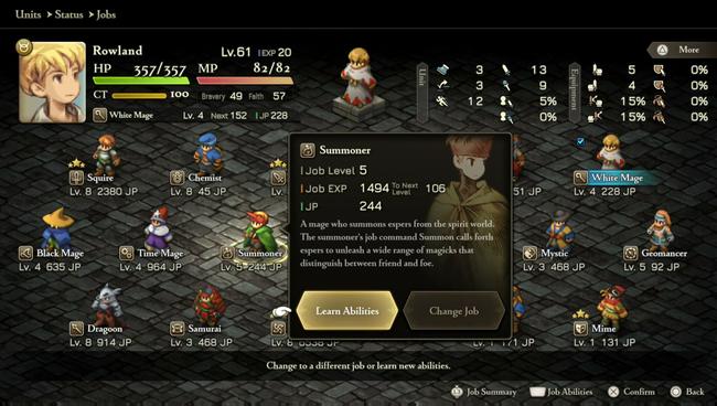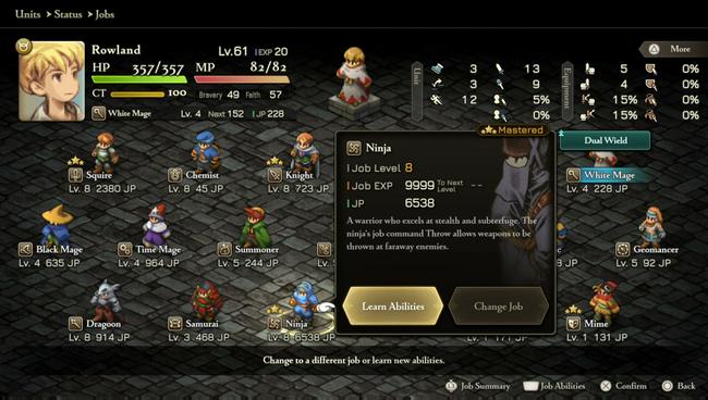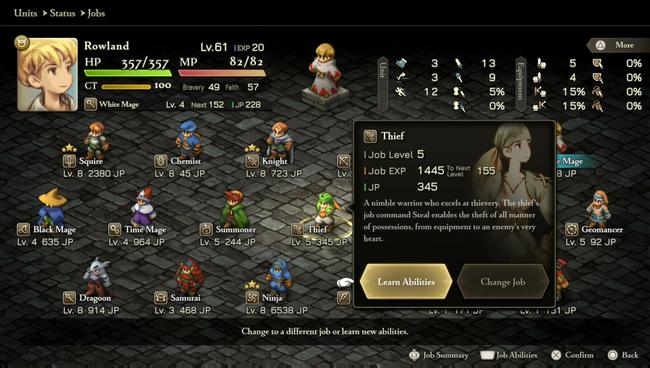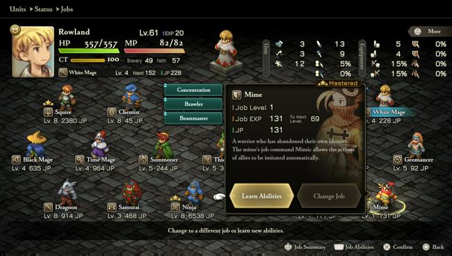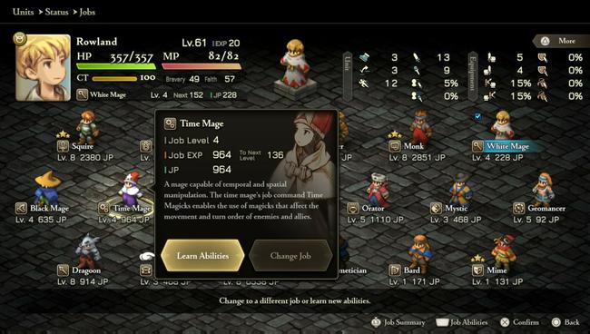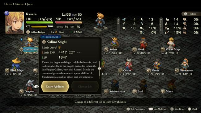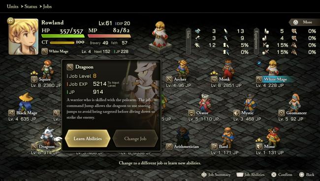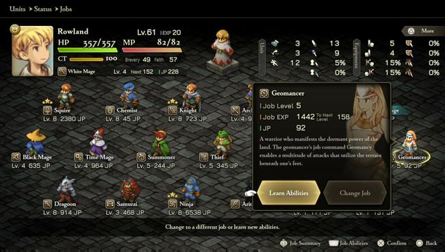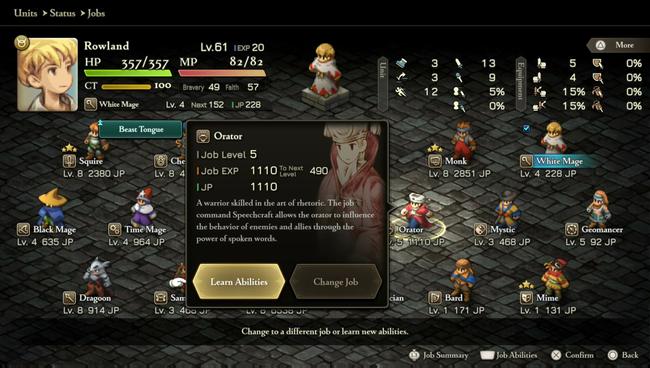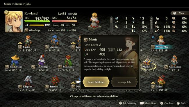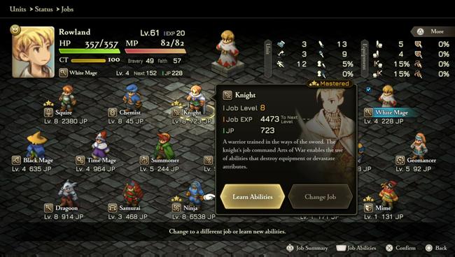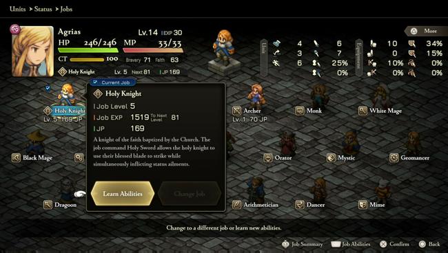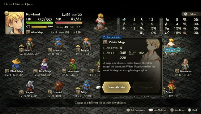 The Squire serves as the foundation for all characters who deal physical damage, and you should learn its “Focus” action immediately. It’s the most efficient way to earn JP (experience)!