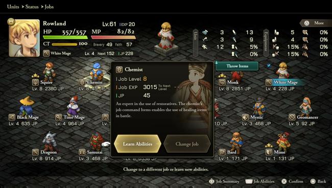 The Chemist class forms the foundation for many magic-focused professions, and its skill in applying items to units at a distance remains useful even in the later stages of the game. This ability can prove beneficial.
