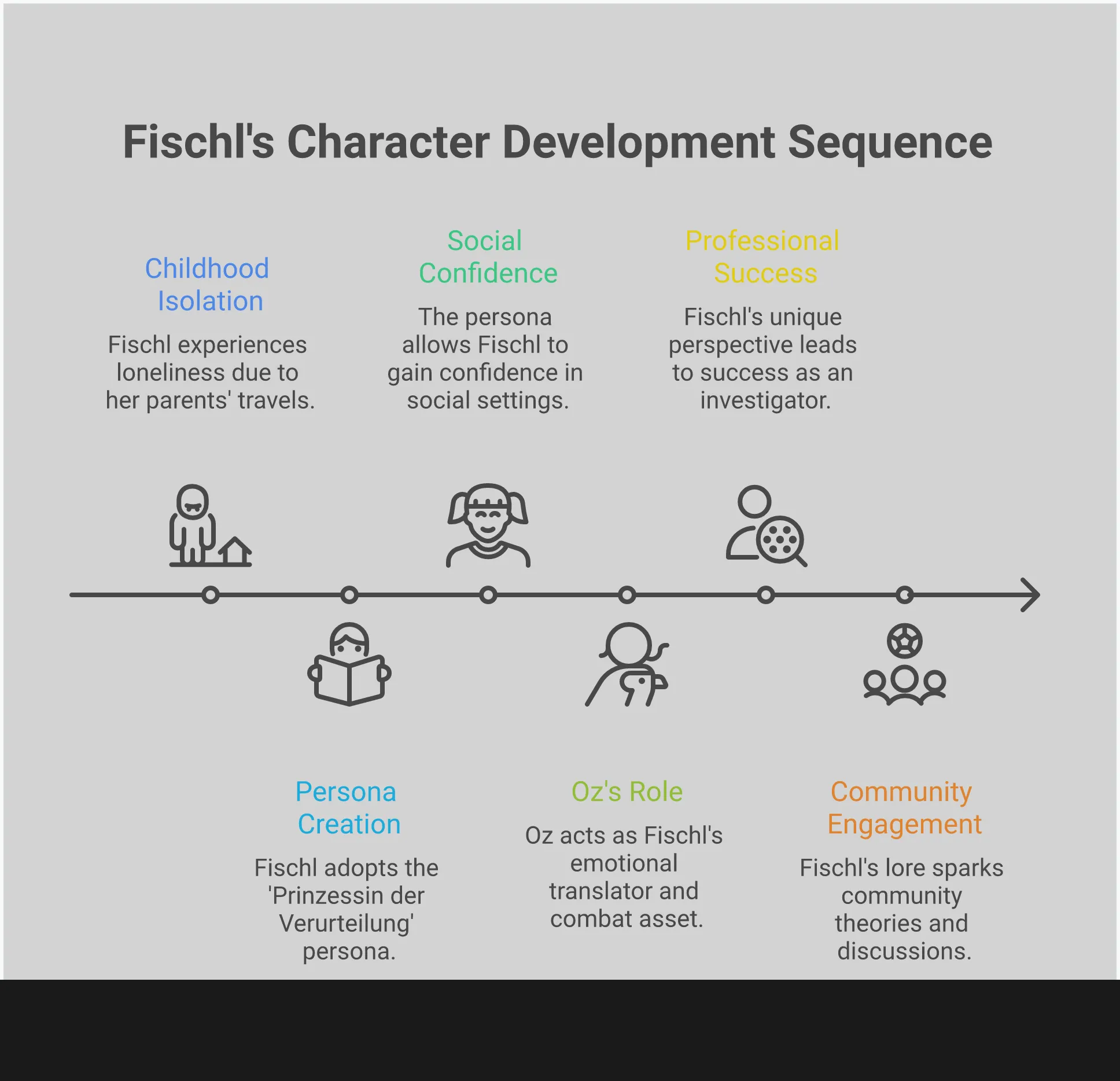 Oz isn’t just Fischl’s raven companion; he’s central to understanding who she really is. Their bond reveals the person beneath her dramatic facade, showing us the real Amy and her path to finding herself. Through their interactions, we learn what Fischl truly wants: to connect with others, feel confident, and find a sense of belonging.