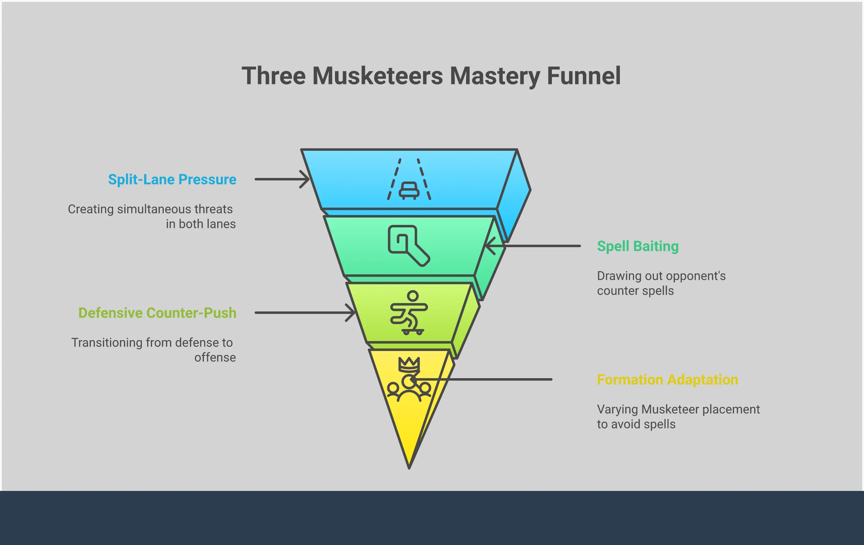 - Build Your Deck Around Spell Bait: The Three Musketeers are a magnet for spells like Fireball and Lightning. Your entire deck should be designed to force your opponent to use their key spells on other cards first, creating a safe window to deploy your main win condition.