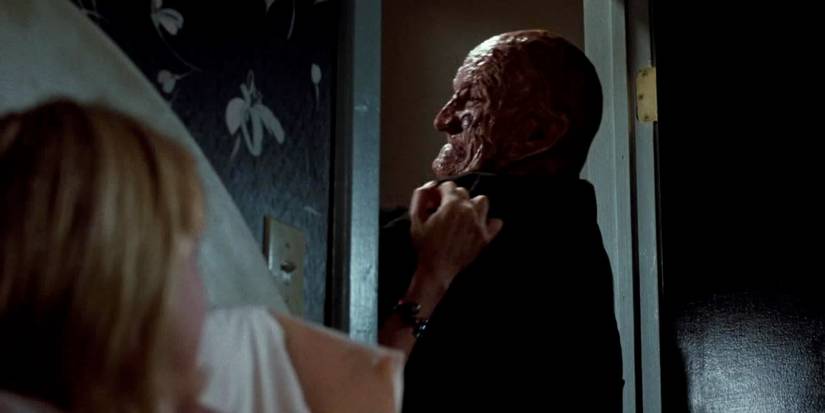 This scene from A Nightmare on Elm Street 3: Dream Warriors perfectly showcases Freddy Krueger’s mix of frightening behavior and humor. While Kristen Parker is discussing her disturbing dream with her mother, her mother’s date can be heard requesting a drink. When Kristen asks her mother to stay, her mother is suddenly and violently pulled away.