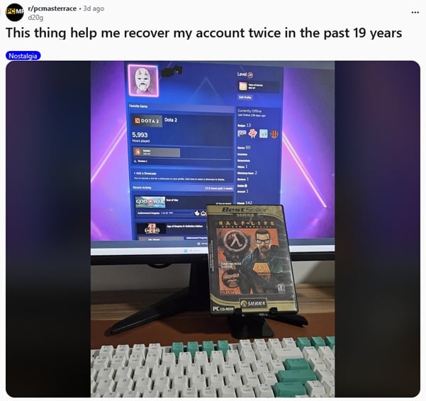 A gamer proved the value of owning physical game copies when they successfully recovered their stolen Steam account – not once, but twice – using proof of purchase from 19 years ago.