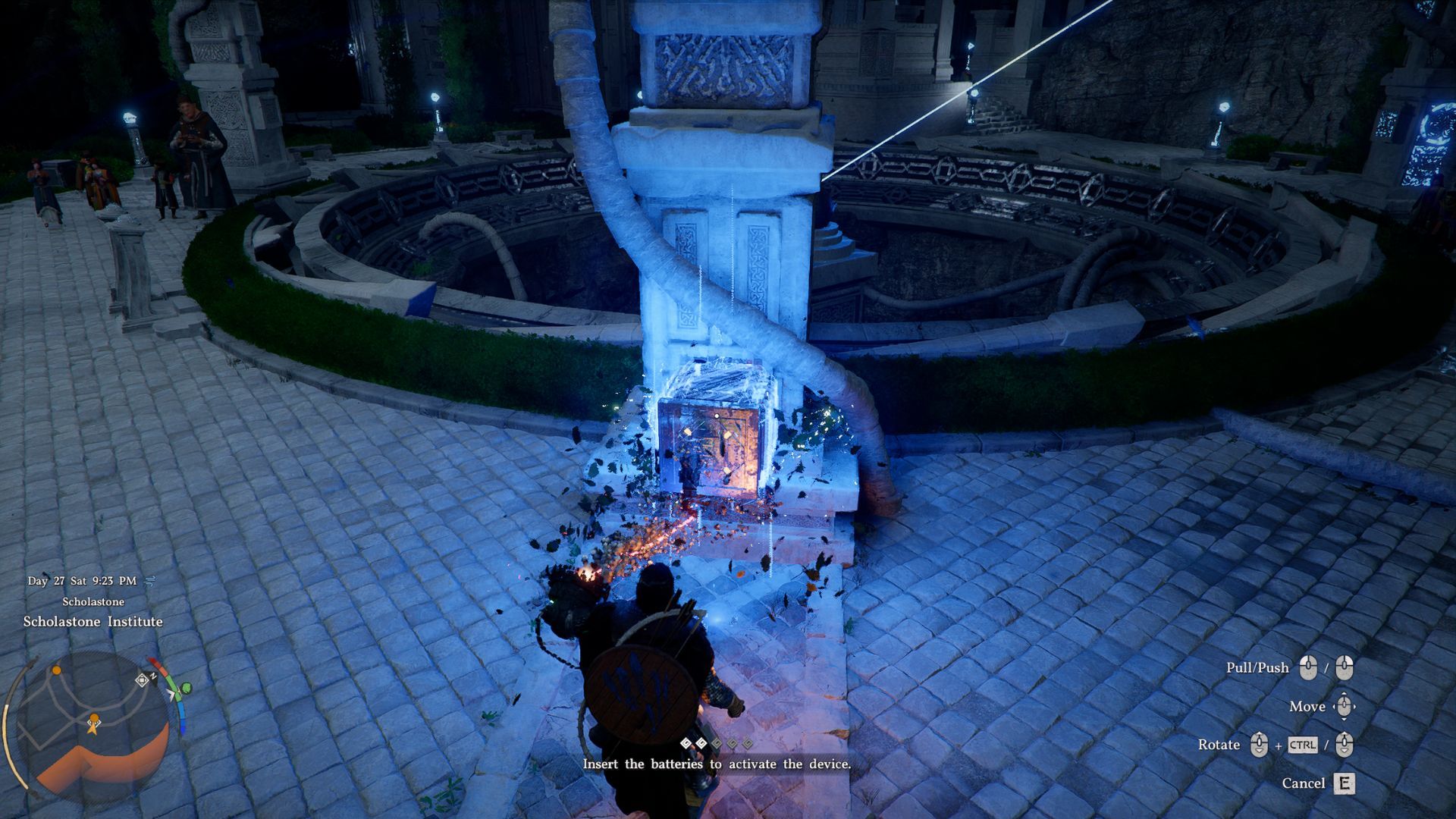 Head to the Scholastone Institute and talk to Dean Grundir. He’ll introduce you to Octavius. After that, you’ll need to wait 24 hours before you can continue with the quest.