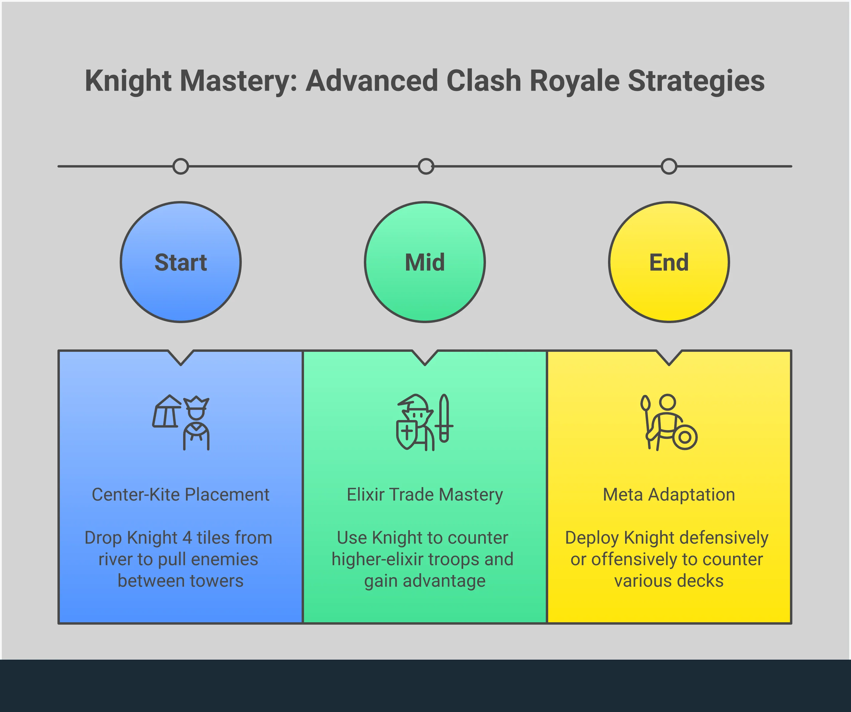 After you’ve learned the fundamentals, it’s time to consider how the Knight can help you win competitive matches. While he appears straightforward, the Knight truly excels when you plan your moves carefully. Skilled players don’t just use him to defend against a Prince; they use him to control your elixir, adapt to the current popular strategies, and effectively counter common decks. He can either solidify your defense or unexpectedly lead a small counterattack into a powerful push that takes down a tower. Let’s dive into the details of making this iconic warrior a key part of your winning game plan.