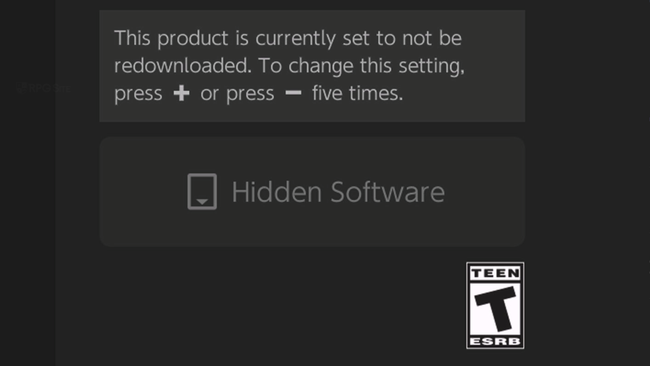 - From here, press + or – on the controller five times in a row. You will notice the right button changes to say “Hidden Software” and that this will not be redownloaded when you download the game or other DLC.