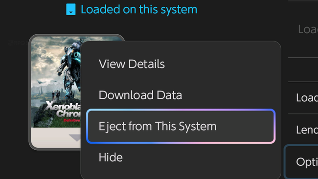 - In the Virtual Game Card page for Xenoblade Chronicles X: Definitive Edition Nintendo Switch 2 Edition, go into Options and select “Eject from This System”.