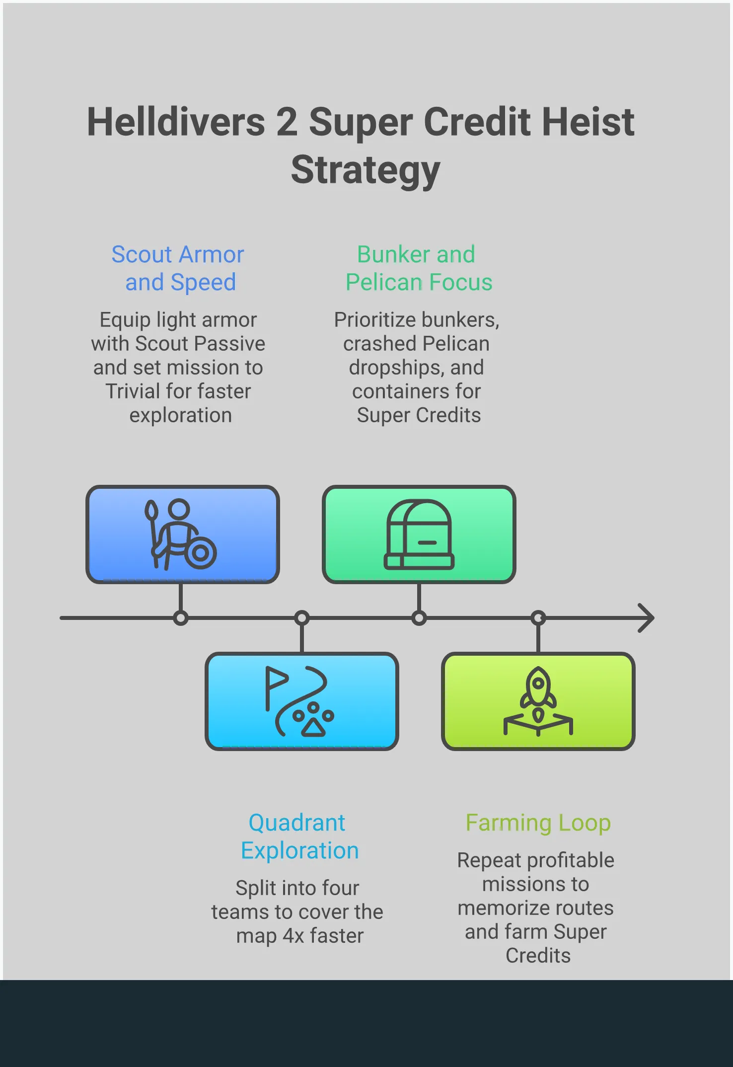 - Prioritize exploration over mission objectives: When farming, your goal is to find credits, not just complete the main task. Systematically search the entire map for points of interest like bunkers and supply pods, as a coordinated team that splits up can clear a map in minutes.