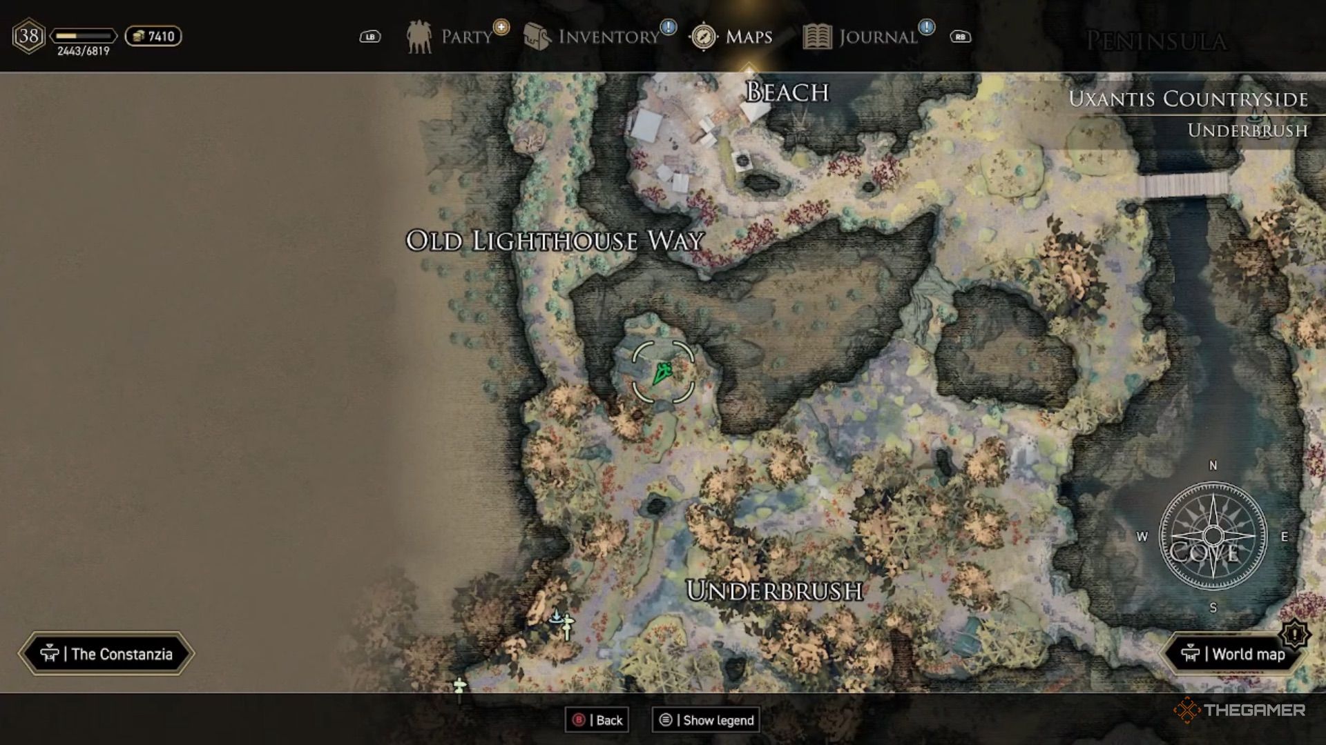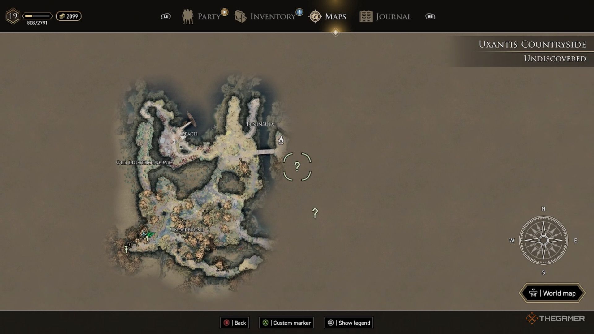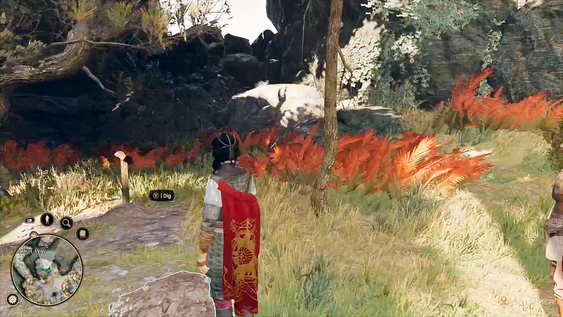 Head to the tree stump located right across from the rope bridge in the Uxantis Countryside. If you look at your map and mark the question mark slightly south of the campfire near the rope bridge, you’ll discover a place to dig.