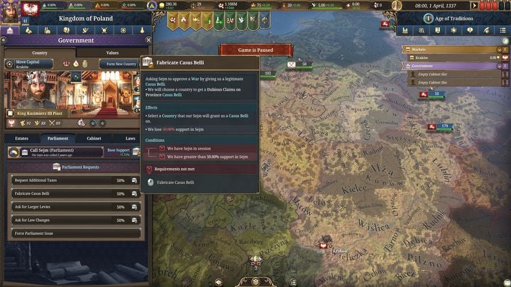 3. On the list of requests, you will be able to devote 50% of your support to a given demand. One of them is Fabricate Casus Belli, which makes it much easier to start hostilities against the country of your choice.