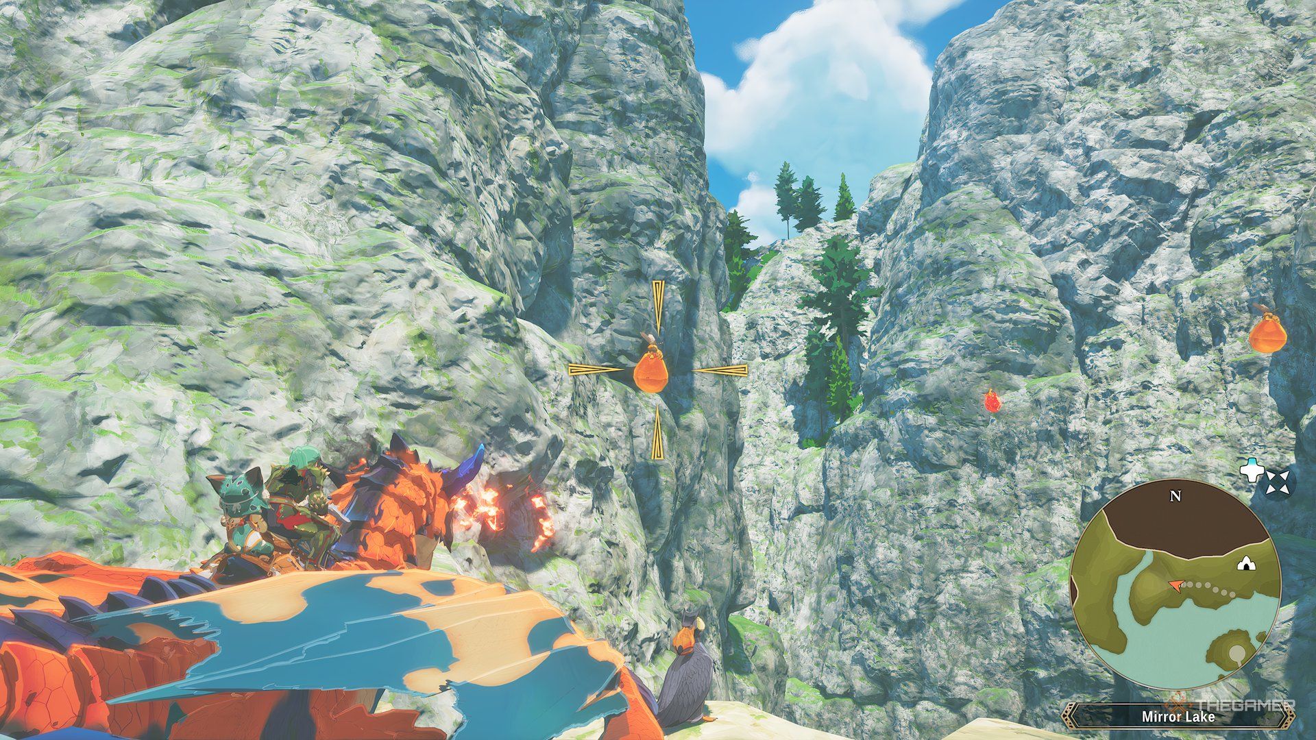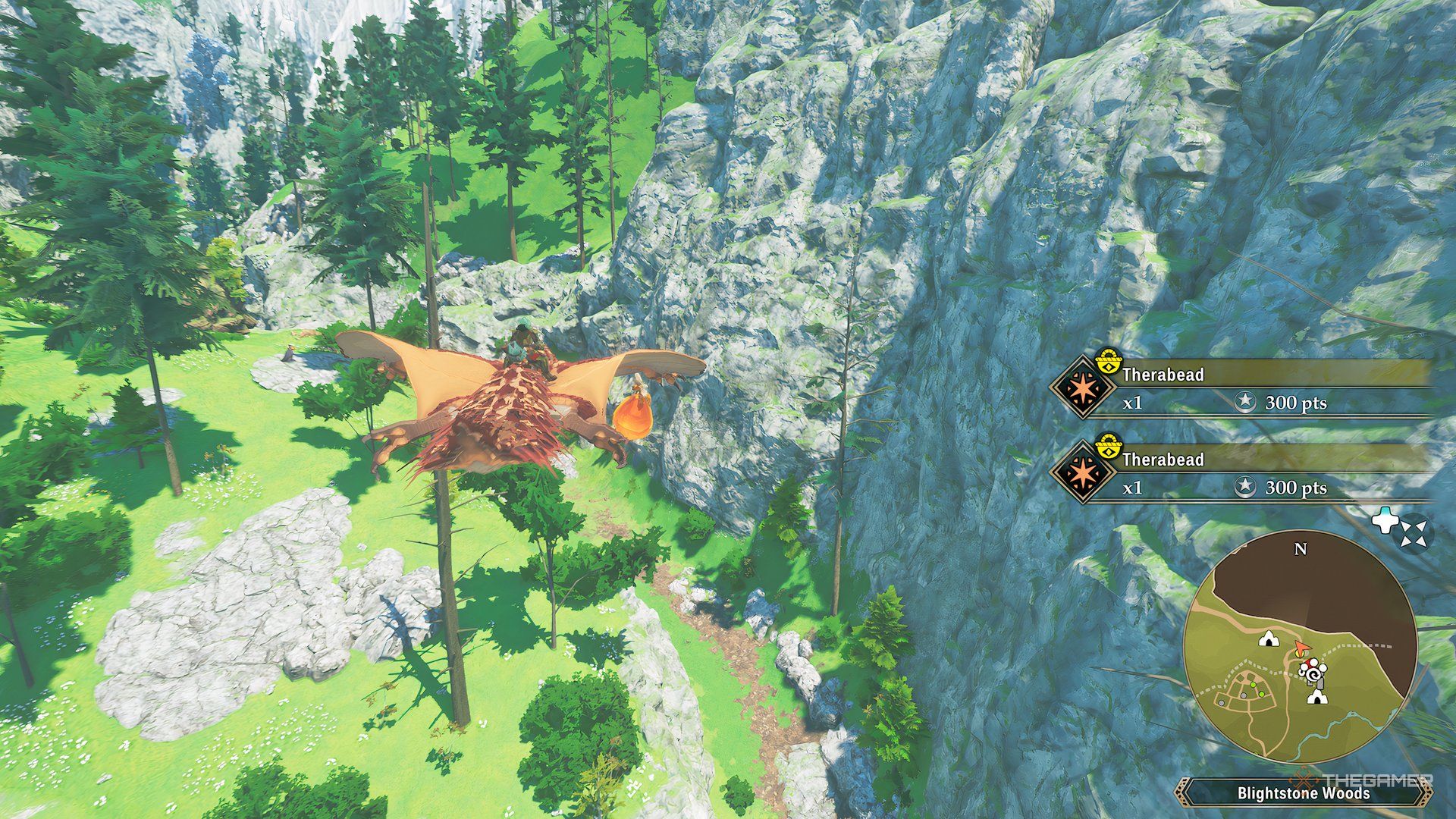You can break open Therabees to get Therabeads – those orange shapes you see floating in the air. You can either fly right into them or attack them with your breath. Regular Therabeads give you Bronze Trade Points, and bigger ones give you Gold Trade Points.
