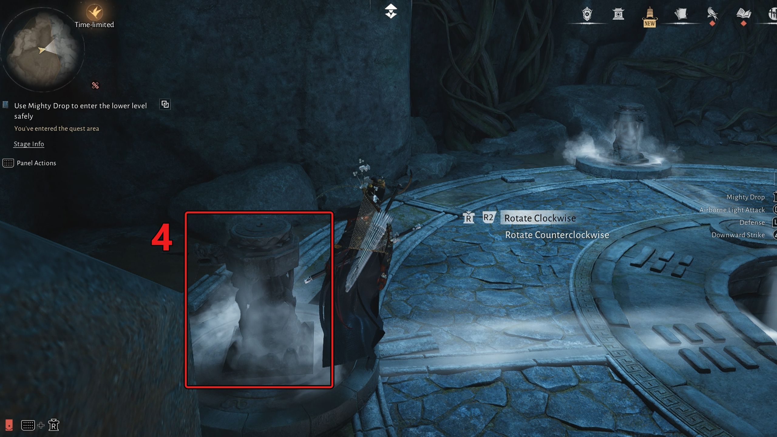 Use Mighty Drop to land safely, then explore the area and gather clues. After you’ve collected everything, talk to Feng to continue.
