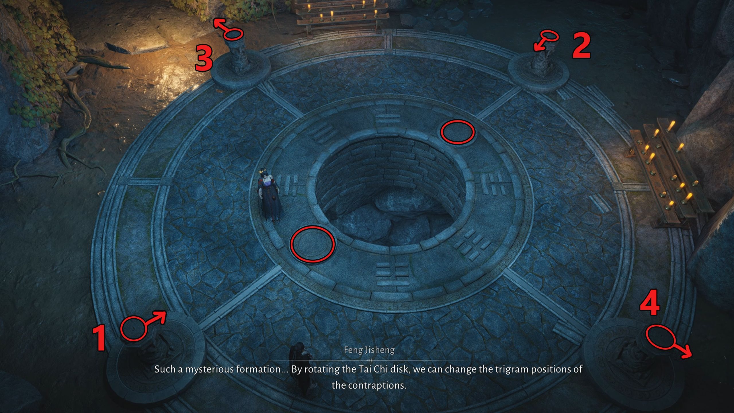 Listen to his explanation of Tai Chi and how the machines function. Then, with Fend standing on one of the plates, step onto the other to activate the Yin-Yang Dial and start solving the Tai Chi puzzles in Where Winds Meet.