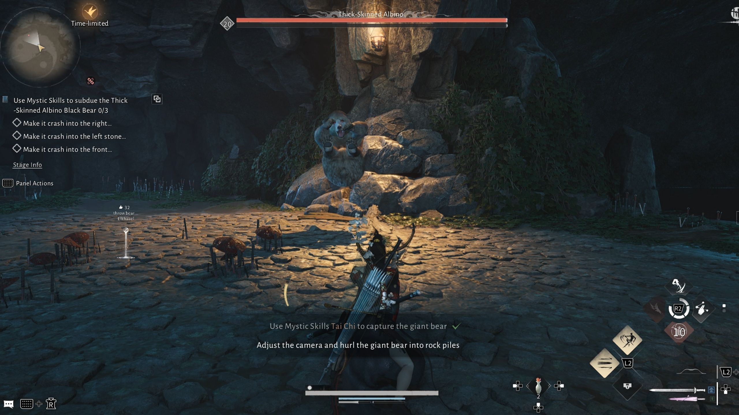 Ahead, you’ll find what appears to be a training area, guarded by a rare, tough Albino Black Bear. To win, young adventurers must battle it while Feng cleverly pretends to be lifeless.