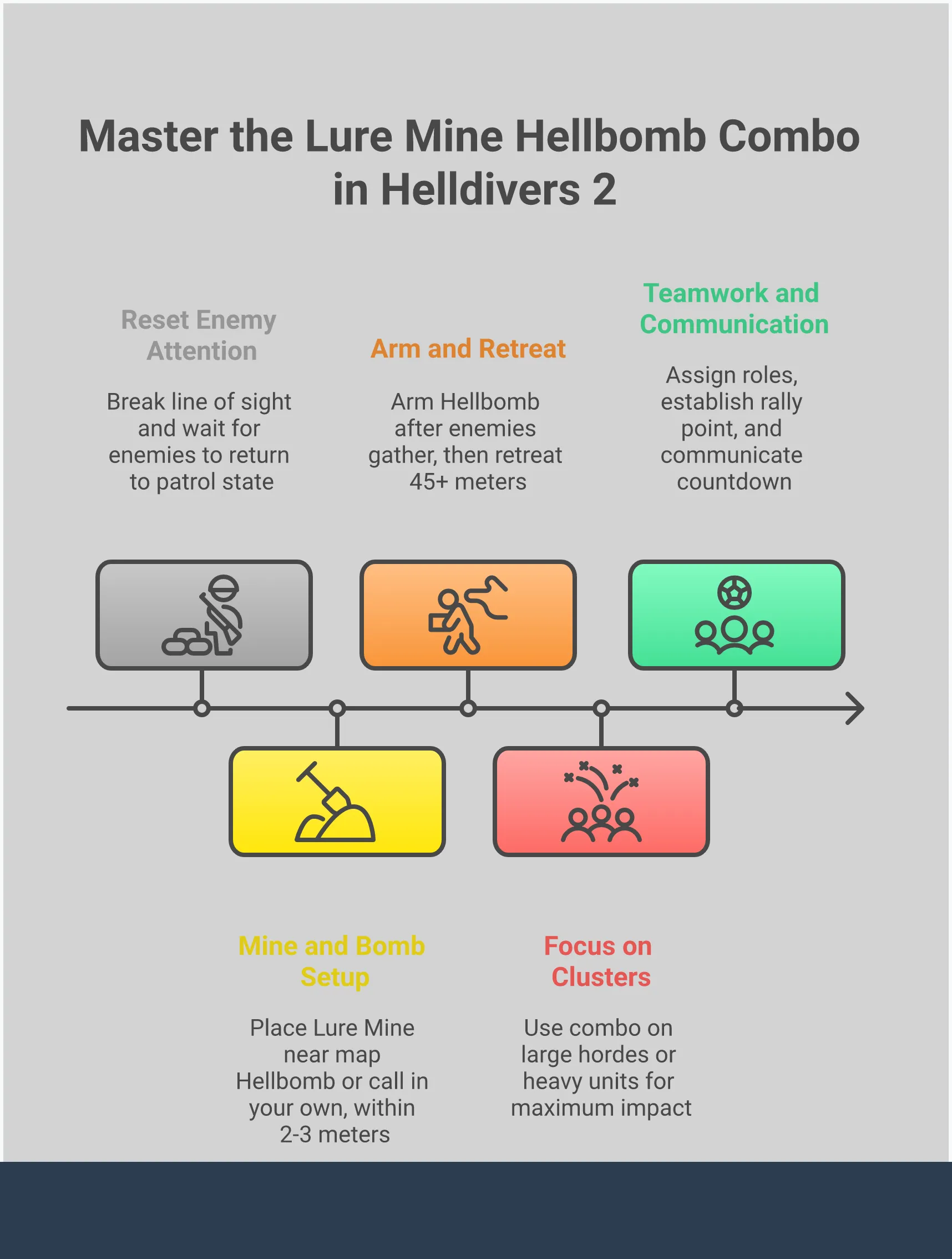 Okay, so before anyone even thinks about laying a mine, we need to be on voice comms and coordinate. The whole point of this tactic is to pull in enemies who aren’t already chasing me. If they’re already attacking, they won’t take the bait. We seriously need to work as a team to get them off my tail first. Everyone needs to know what they’re doing – who’s going to draw their attention, who’s setting up the Hellbomb, and who’s watching our backs. A quick heads-up makes sure we’re all on the same page, instead of running around doing four different things. Seriously, a simple “I’m drawing them in, get ready to arm it!” can be the difference between a win and a total disaster.