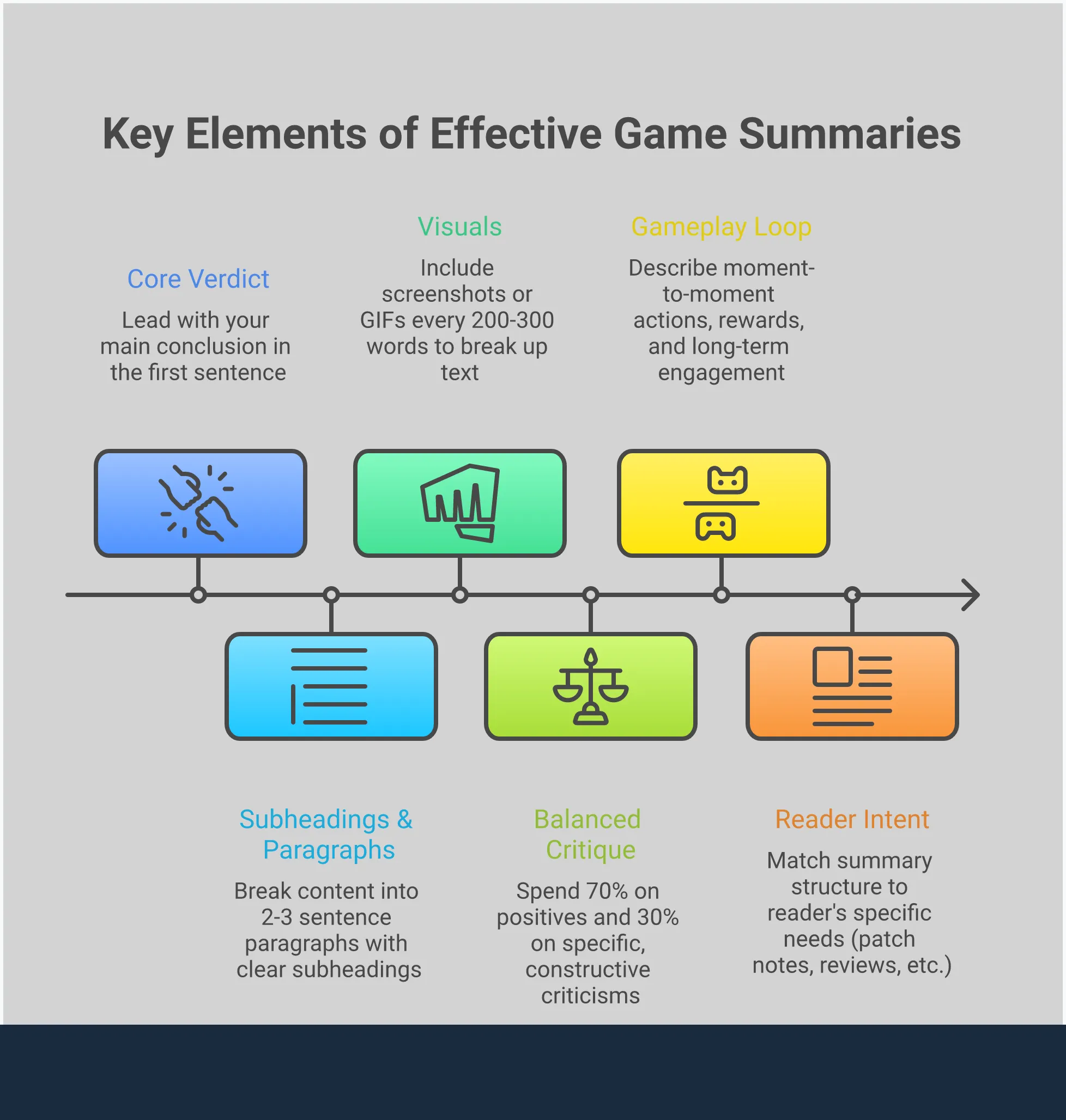 Good summaries value your reader’s time. Gamers are always searching for information to help them choose games, make purchases, or improve their skills, and they don’t want to wade through lengthy text. Organizing your thoughts clearly lets them quickly find what they need. Focus on the most important details first, use straightforward language, make your writing easy to scan, and aim for a balance between being informative and engaging. If you can master this approach, your summaries will be much more helpful, and you’ll earn a reputation as a reliable source within the gaming world.