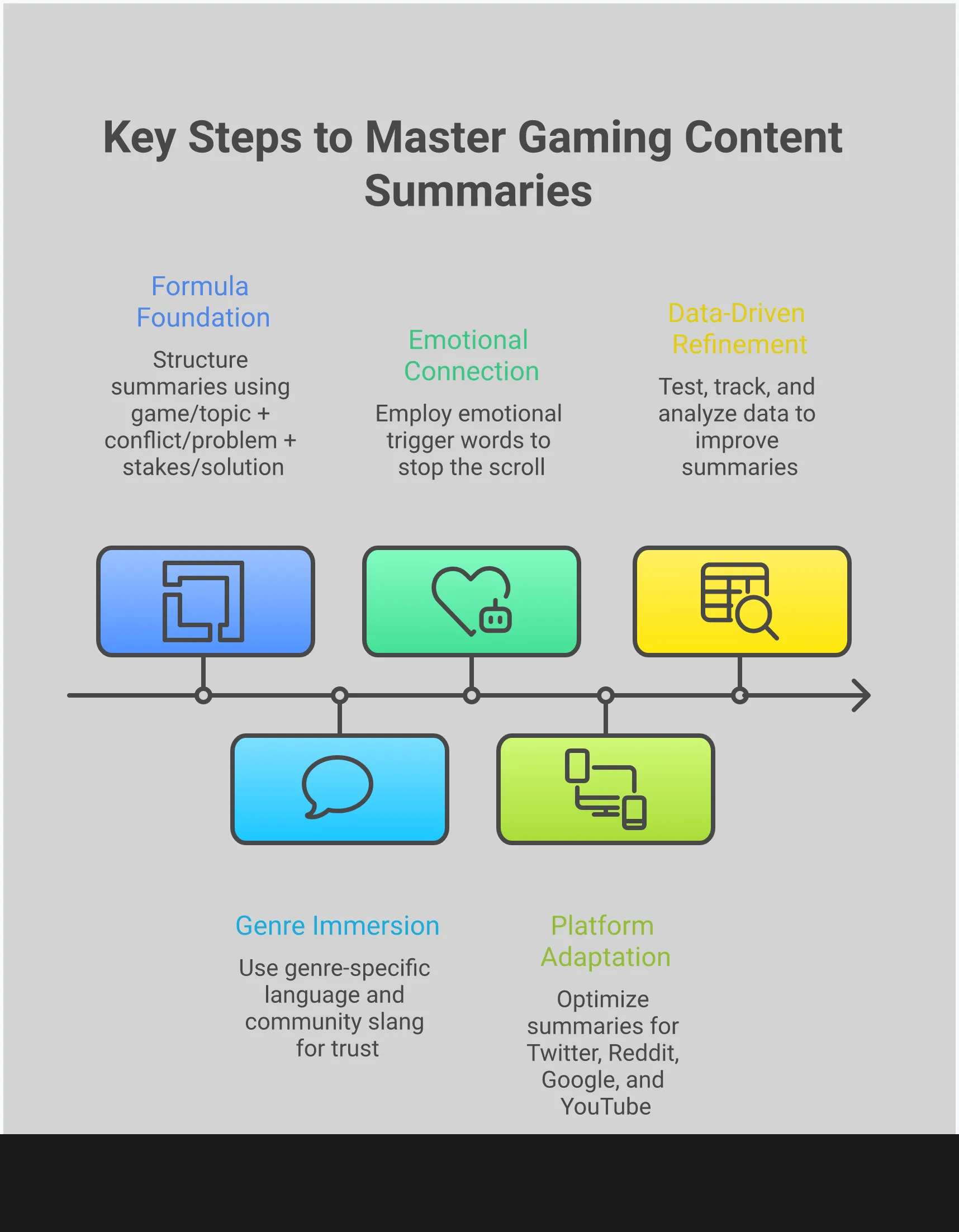 - Adapt Your Approach for Different Content: A summary for a lore deep dive shouldn’t sound like one for a build guide. Tailor your tone and focus to match the specific content type, ensuring you set the right expectations and deliver a promise that resonates with what the reader is looking for.
