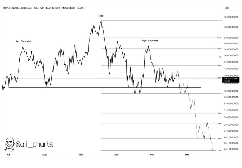 Famous-or perhaps infamous-analyst Ali Martinez inspects the ruins and forecasts doom around $33, $30, $28, and even $26. The dotted lines on the chart mockingly suggest how swiftly momentum speeds away when support folds-such a cruel game! And yet, HYPE dares to follow that merciless path, perhaps with a dash of hope or folie à deux.