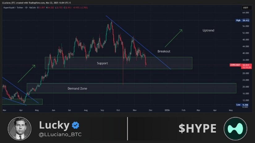 Lucky’s chart sketches out the grand saga-despite all the chaos, HYPE still dances within its range, clinging to $33-$34 support like a drunkard to his last bottle. Sure, the descending trendline from the peaks lurks ominously, but as history suggests, compression often preludes a dramatic breakout-either triumphant or tragic. The suspense! 🎭
