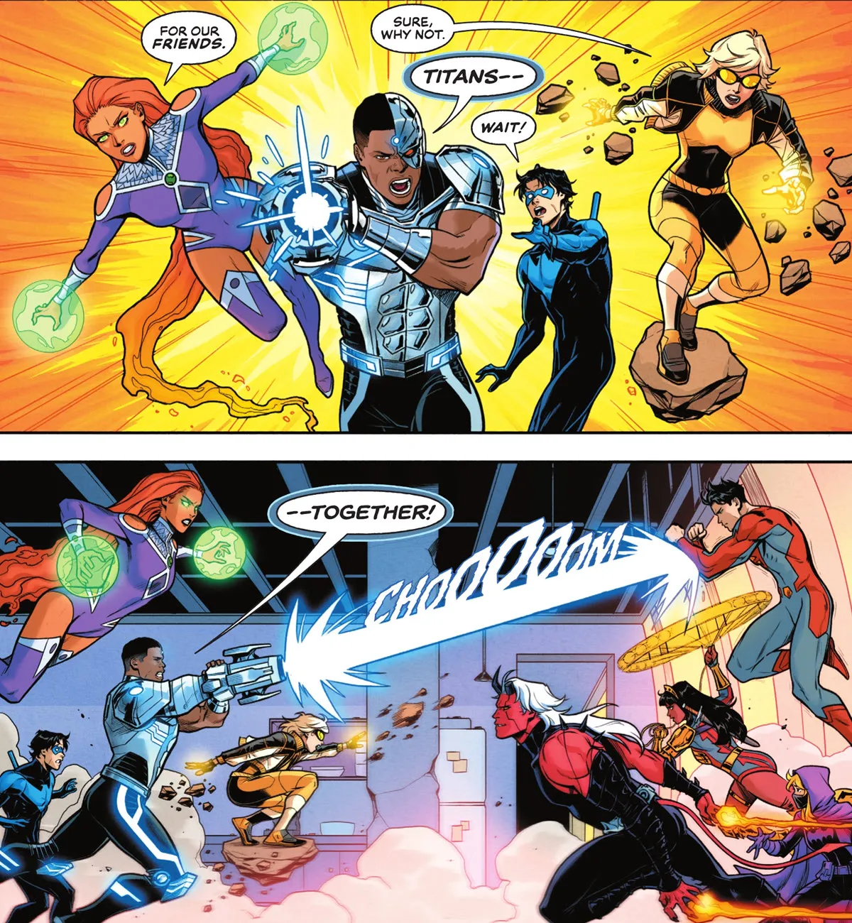 A fight soon erupted, and the younger heroes told the Titans they’d been stuck in a virtual reality. They explained a former Justice League member, now acting as a villain, had put them there. The New Titans then revealed who had brought them together, and who among them was the traitor.
