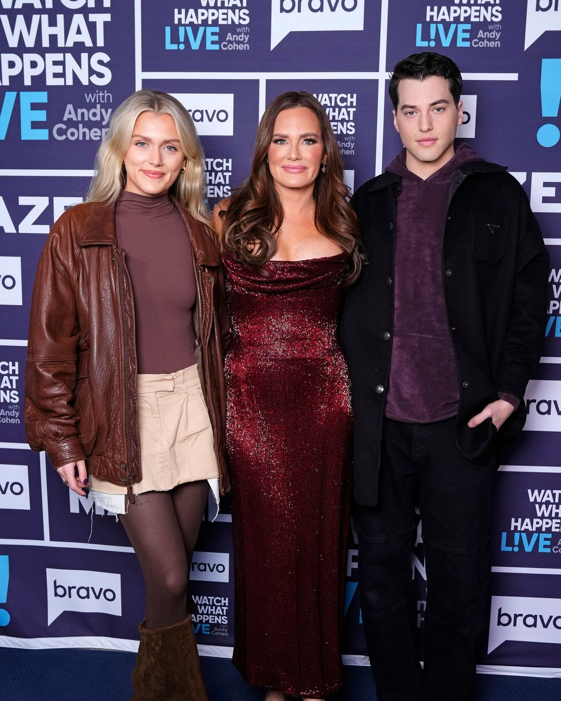 Backstage at BravoCon, getting the Marks family together proved difficult. With Meredith busy at the most popular panel of the weekend (RHOSLC), Brooks and Chloe needing to work the red carpet, and Seth wanting to visit Meredith’s booth, we finally managed a quick chat. But just as we found a free couch at the Caesars Forum, a fan recognized them and asked for a picture. Lisa Barlow once jokingly called them a family obsessed with posing, and true to form, they happily obliged. Meredith wore a sleek black dress, Brooks a luxurious knit outfit, Seth jeans and a black shirt over a Bravo “Mazel” tee, and Chloe completed the look with trendy barrel-legged jeans and a black tank top.